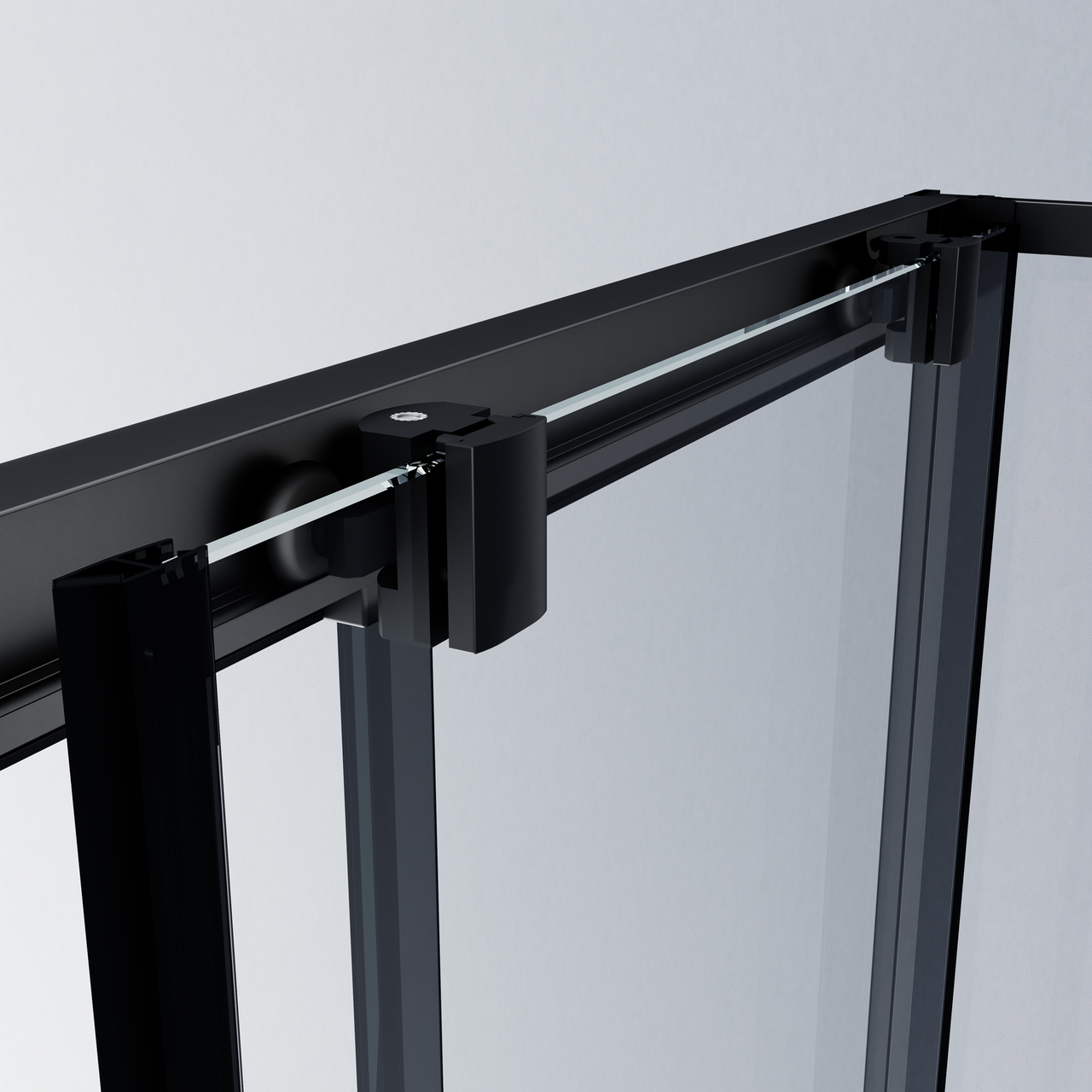 Skyvedøren er laget av 5 mm tykt herdet glass med sikkerhetsfolie. Skulle glasset knuse, vil folien holde glassbitene på plass og hindre at de faller utover gulvet. Bakpanelet er laget av 4 mm tykt glass og har også sikkerhetsfolie.