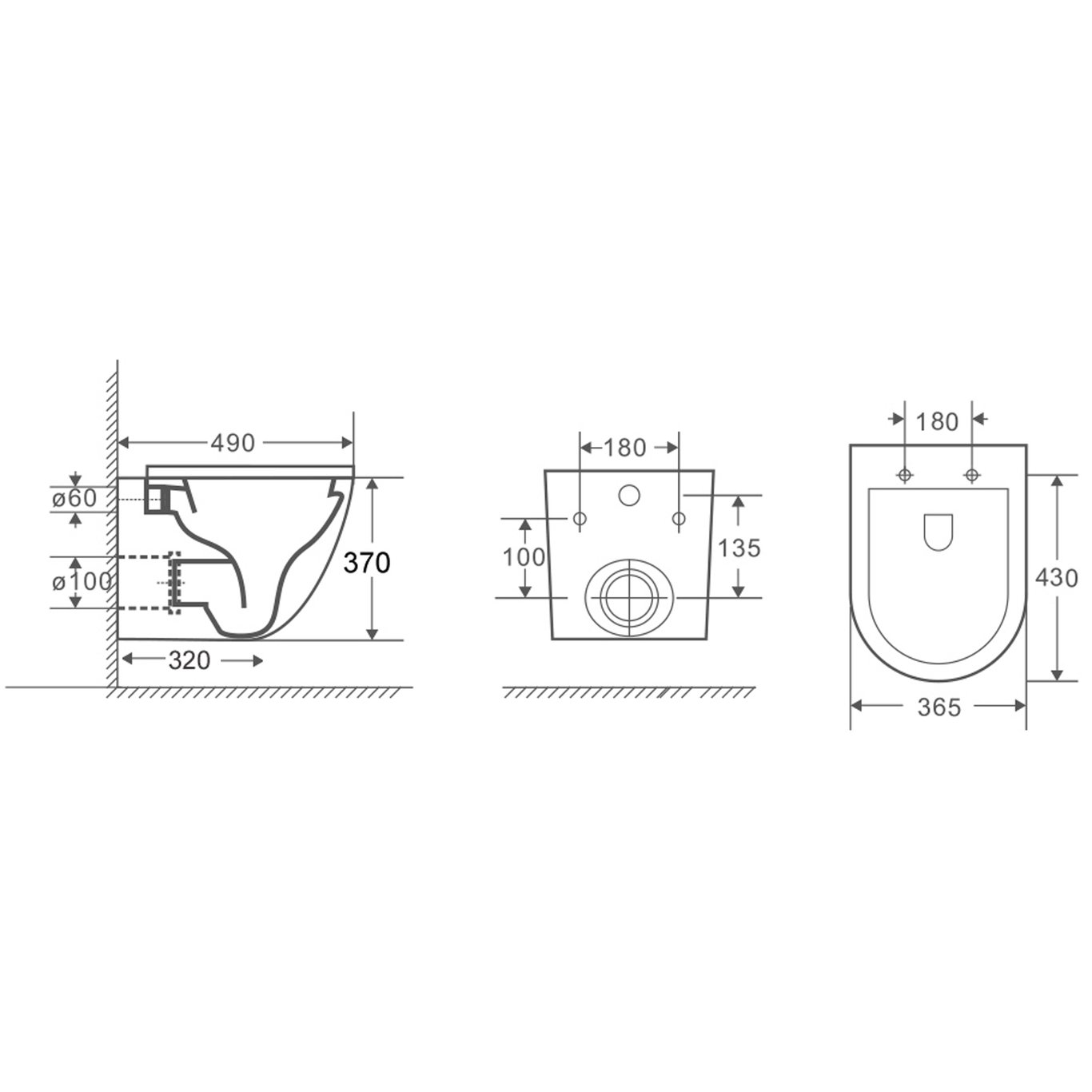 Kort lengdeÅpen spylekantSkjulte veggfester