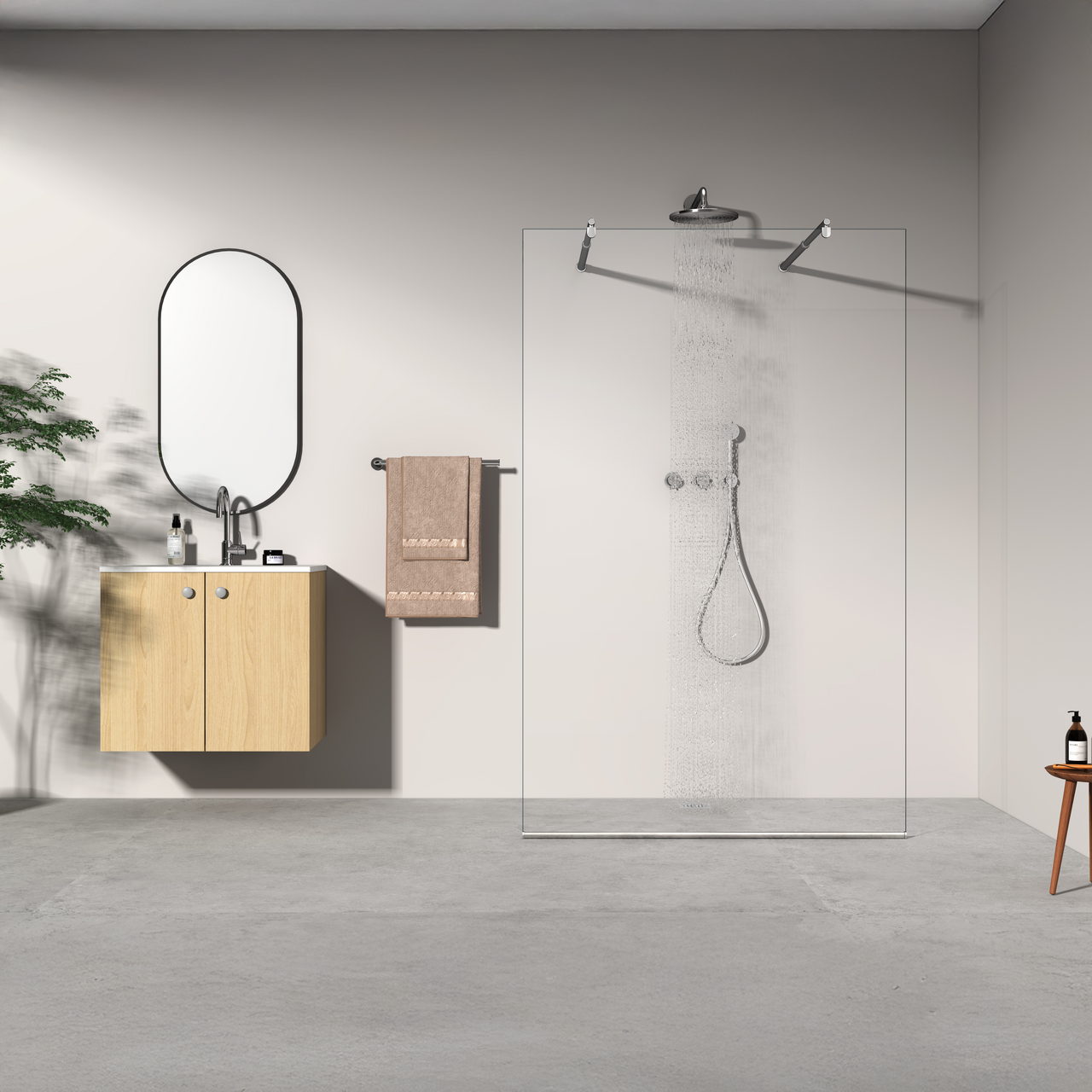 Dusjglasset kan tilpasses med stabilitetsstang i enten krom eller matt sort. Stabilitetsstang kjøpes separat.