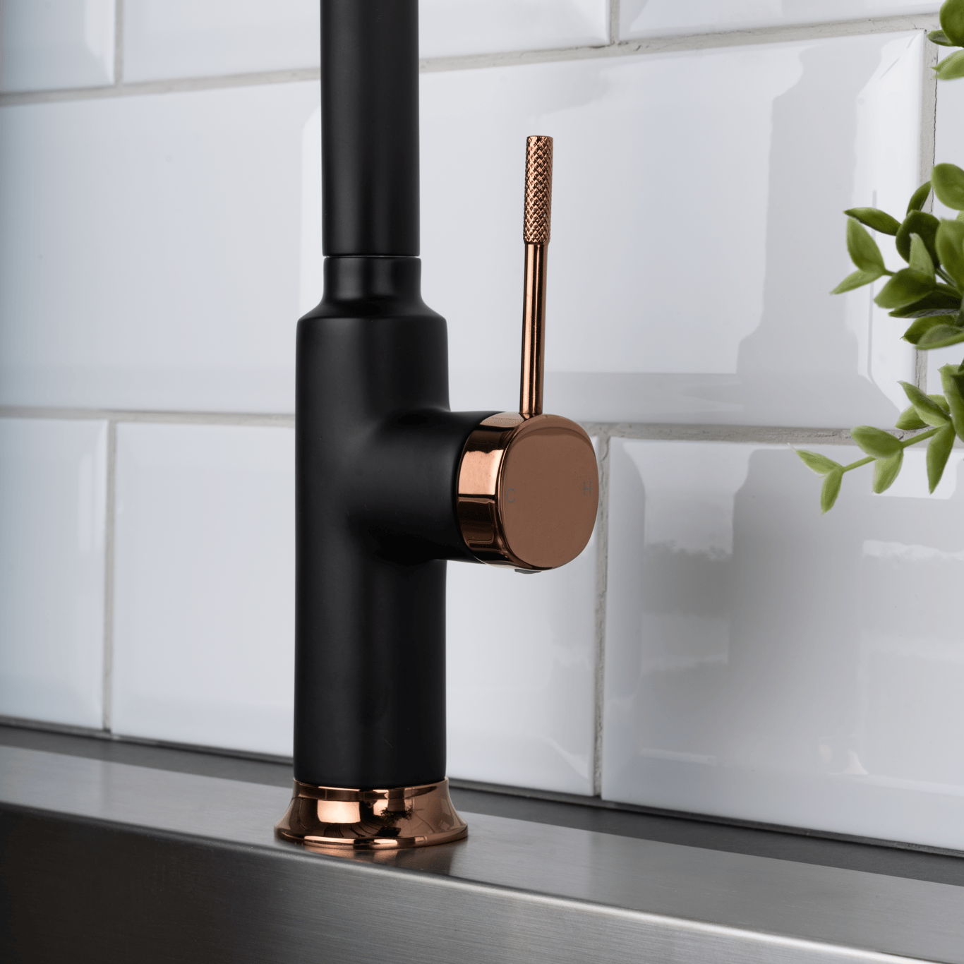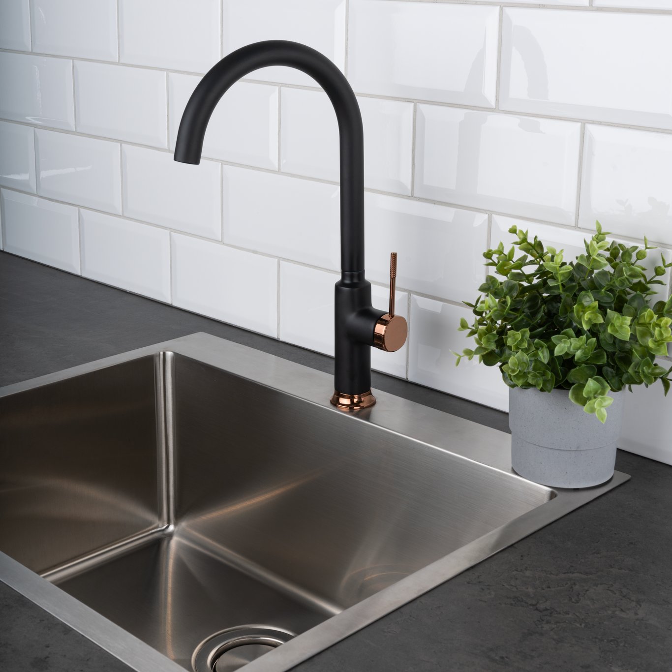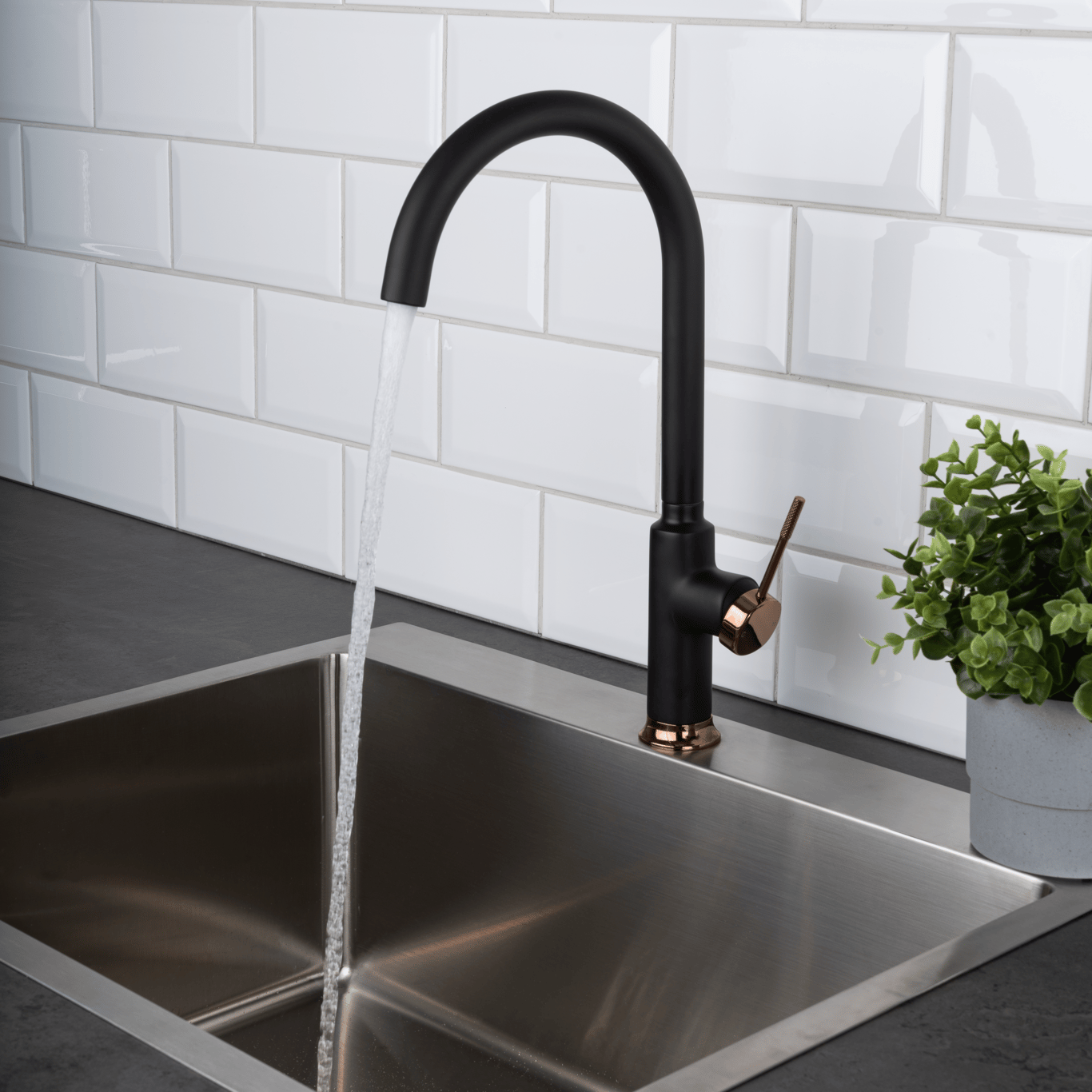 Celeste Wakefild er et flott og moderne svingbart kjøkkenarmatur i matt sort utførelse og kobberdetaljer. Ønsker du et kjøkkenarmatur som skiller seg ut med rene linjer er dette armaturet et godt valg.
