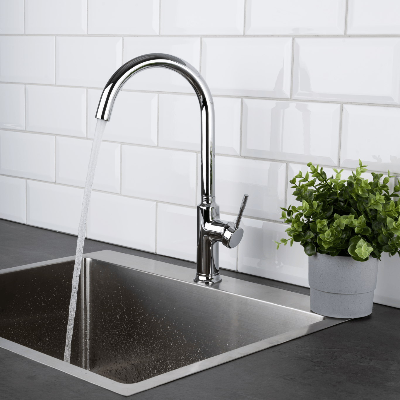 Wakefield fra Celeste er en kjøkkenarmatur med et moderne design og rene linjer, i krom utførelse.