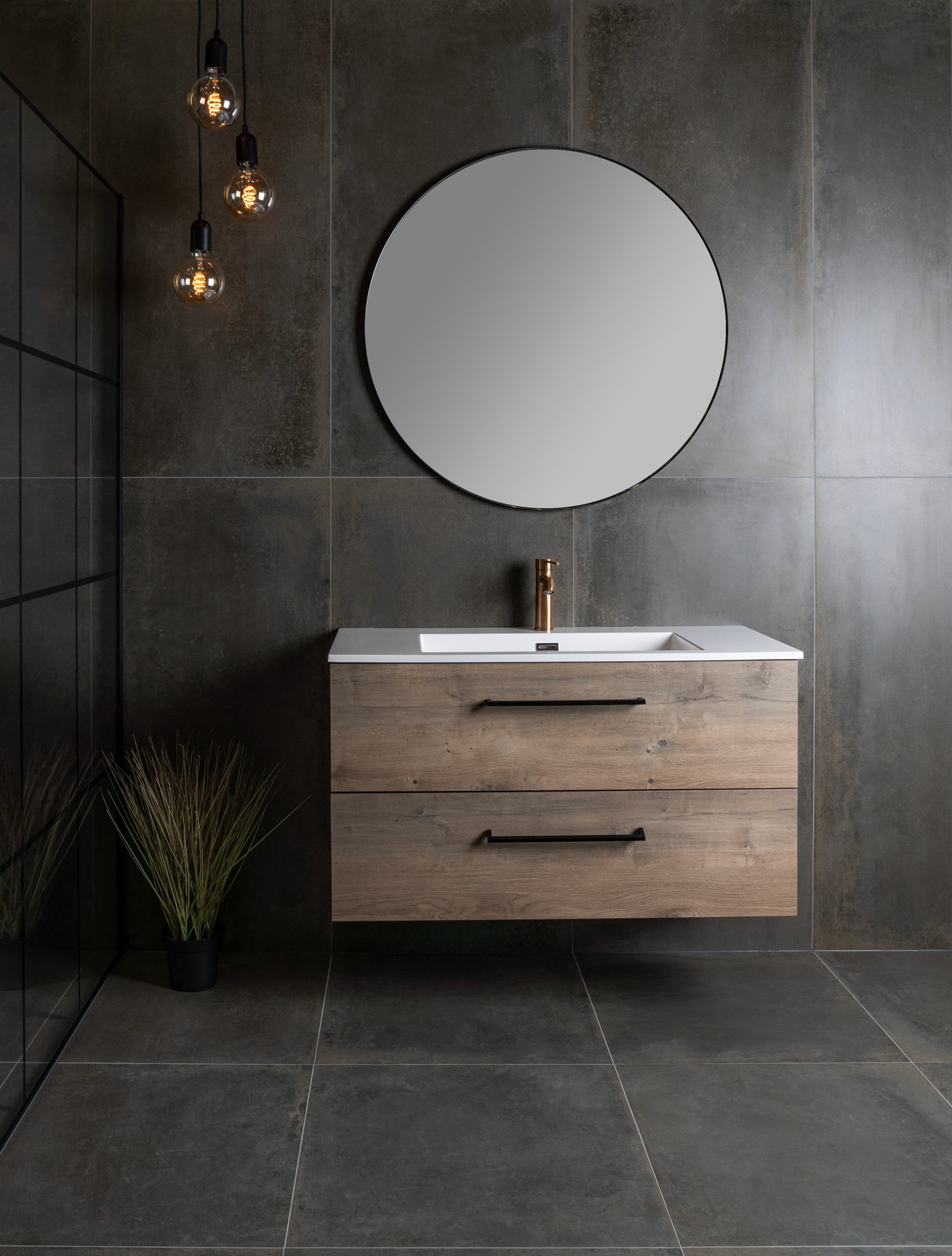 Industrial-serien fra spanske Cifre har en slitesterk overflate med et industrielt design. Denne flisen i størrelse 60 x 60 har en matt, mørk overflate med innspill av rustfarger, som gjør at den kan minne om slett betong.
