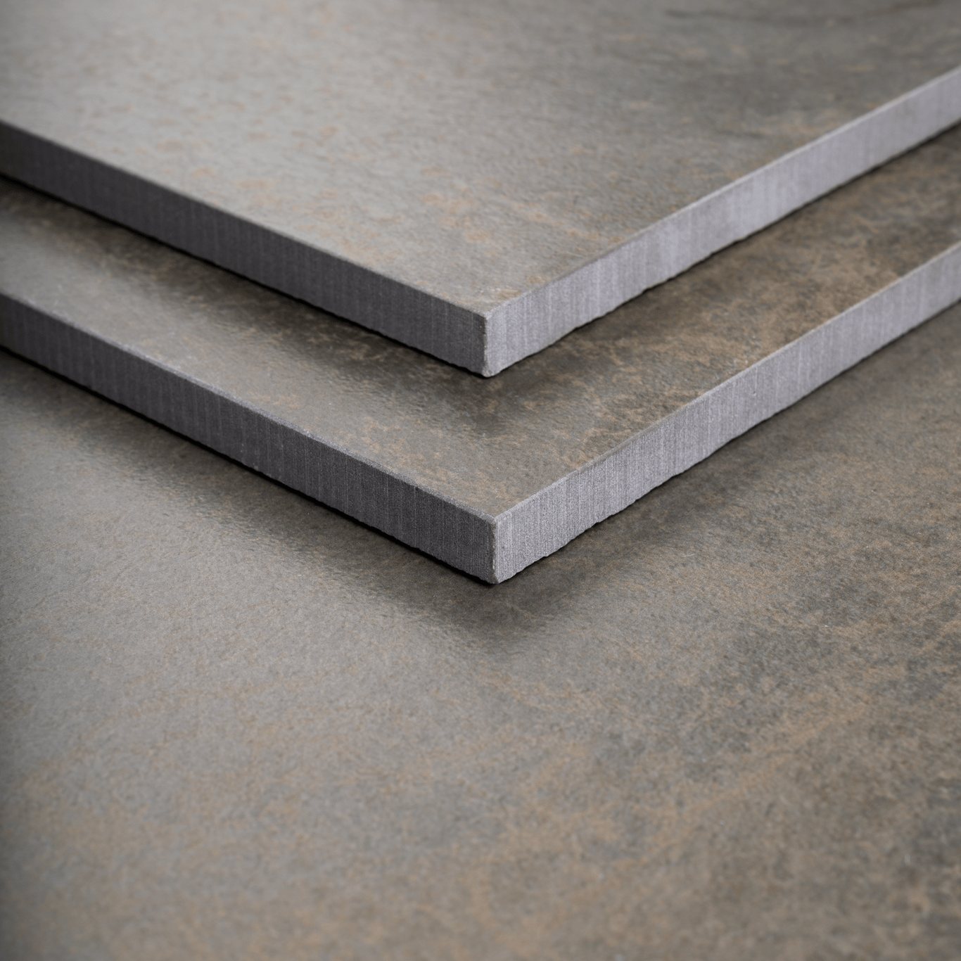 Flisen kan kombineres med både mørke og lyse toner, og ulike elementer for enten et moderne eller et mer rustikk utrykk. Den har en farget porcellanato-kjerne, en overflate med middels høy ripefasthet, og er egnet til gulv og vegg både innen- og utendørs.