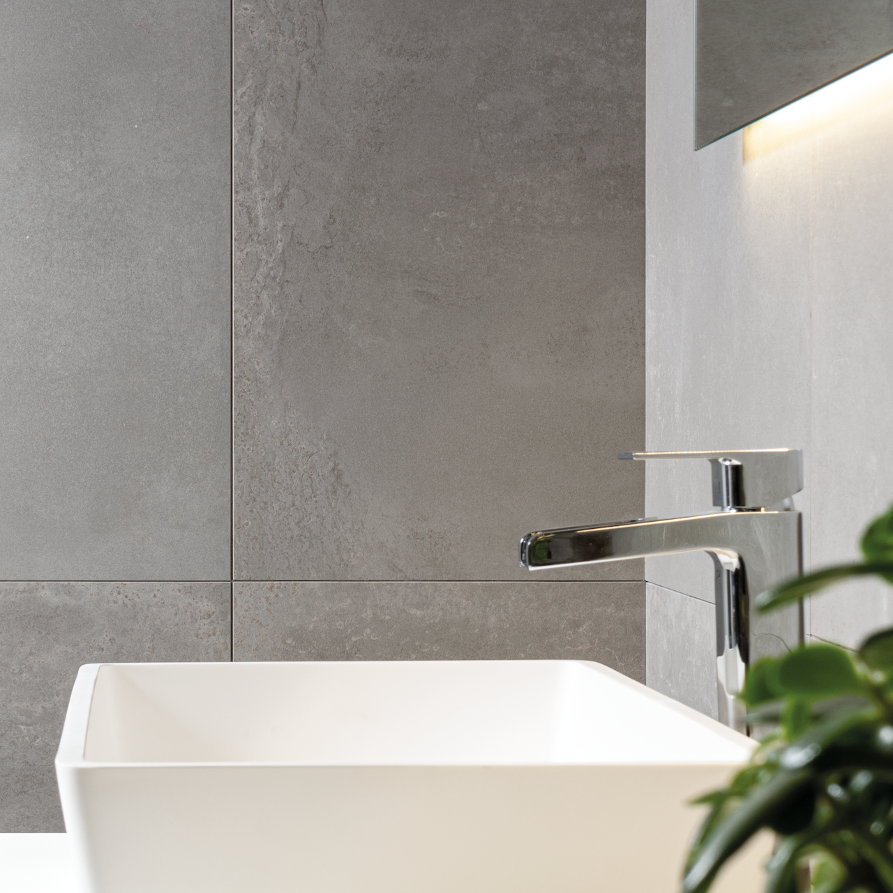 Industrial Silver fra spanske Cifre er en grå flis som kan minne om slett betong. Denne flisen i størrelse 60 x 60 har en matt, slitesterk overflate.