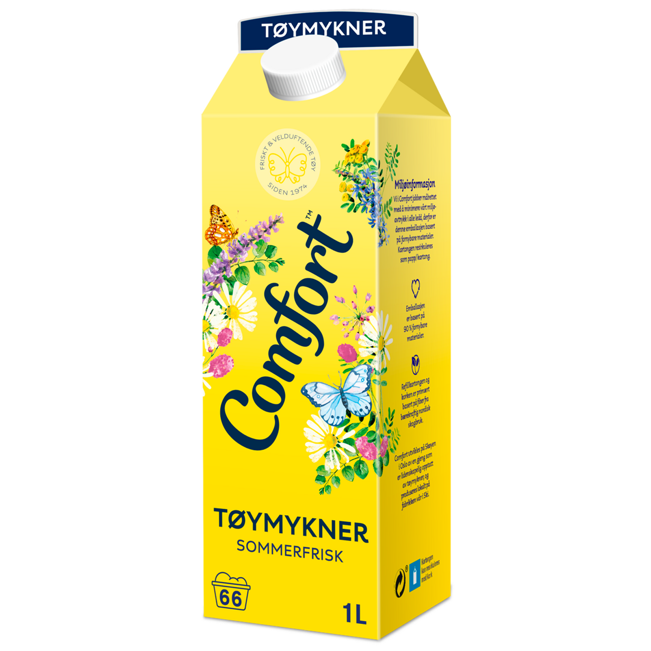Comfort Sommerfrisk med duft inspirert av norsk sommer. Skyllemiddelet gjør tøyet mykt og mindre statisk.