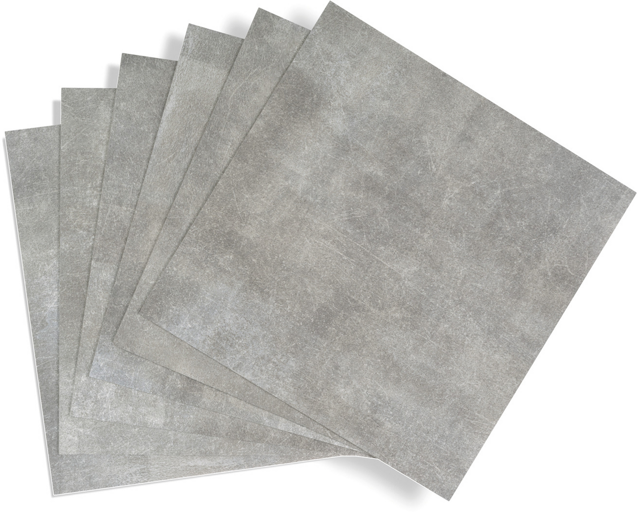Selvklebende vinylfliser fra D-C-Fix, som gjør det enkelt å freshe opp gulvet og skape et nytt uttrykk i rommet. Den grå overflaten har en imitasjon av betong.