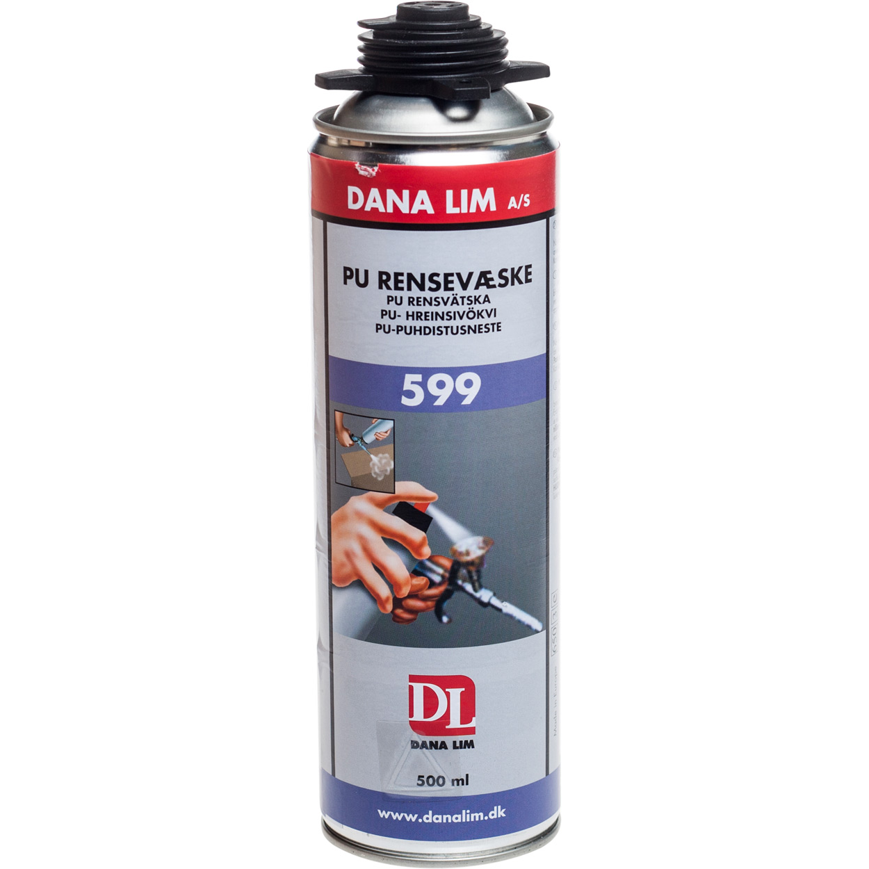 PU Rensevæske 599 er et hurtig og effektivt rensemiddel til fjerning av friskt polyurethanskum. PU Rensevæske 599 anvendes som alminnelig spray til rensning av verktøy o.l, eller til rensning av NBS-skumpistolen både inn- og utvendig.