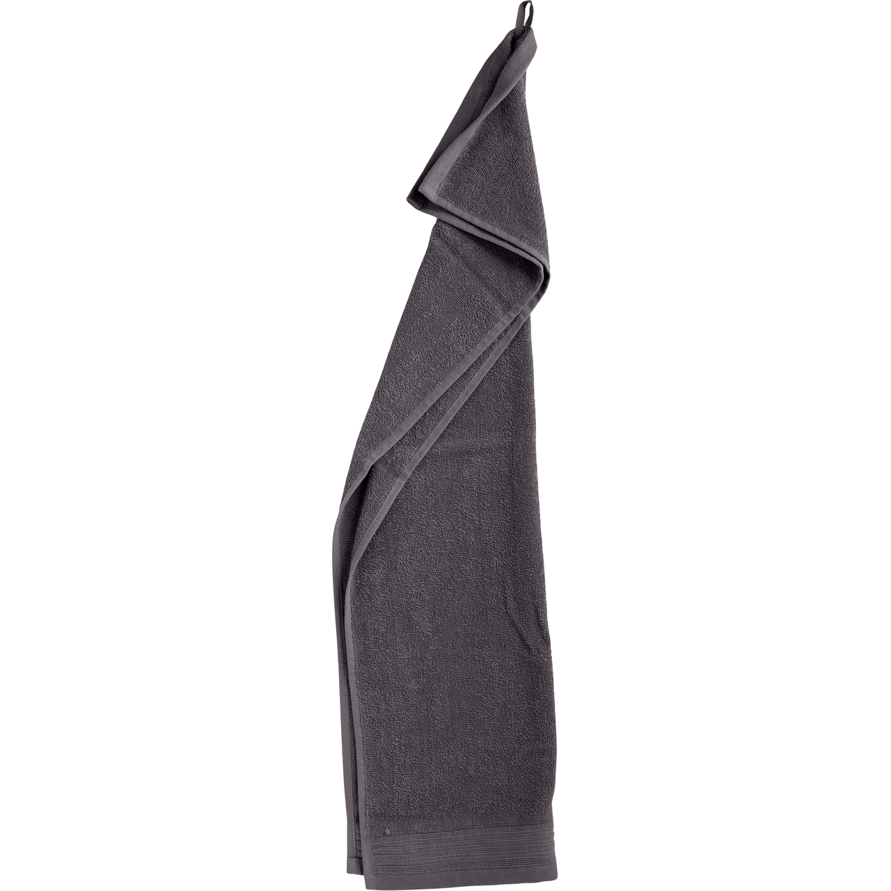 Farge: mørk gråMateriale: 100 % lavtvunnet bomullKvalitet: 420 GSMSertifisering: Oeko-Tex Standard 100Mål: 50 x 100 cmLeverandørens varenummer107876