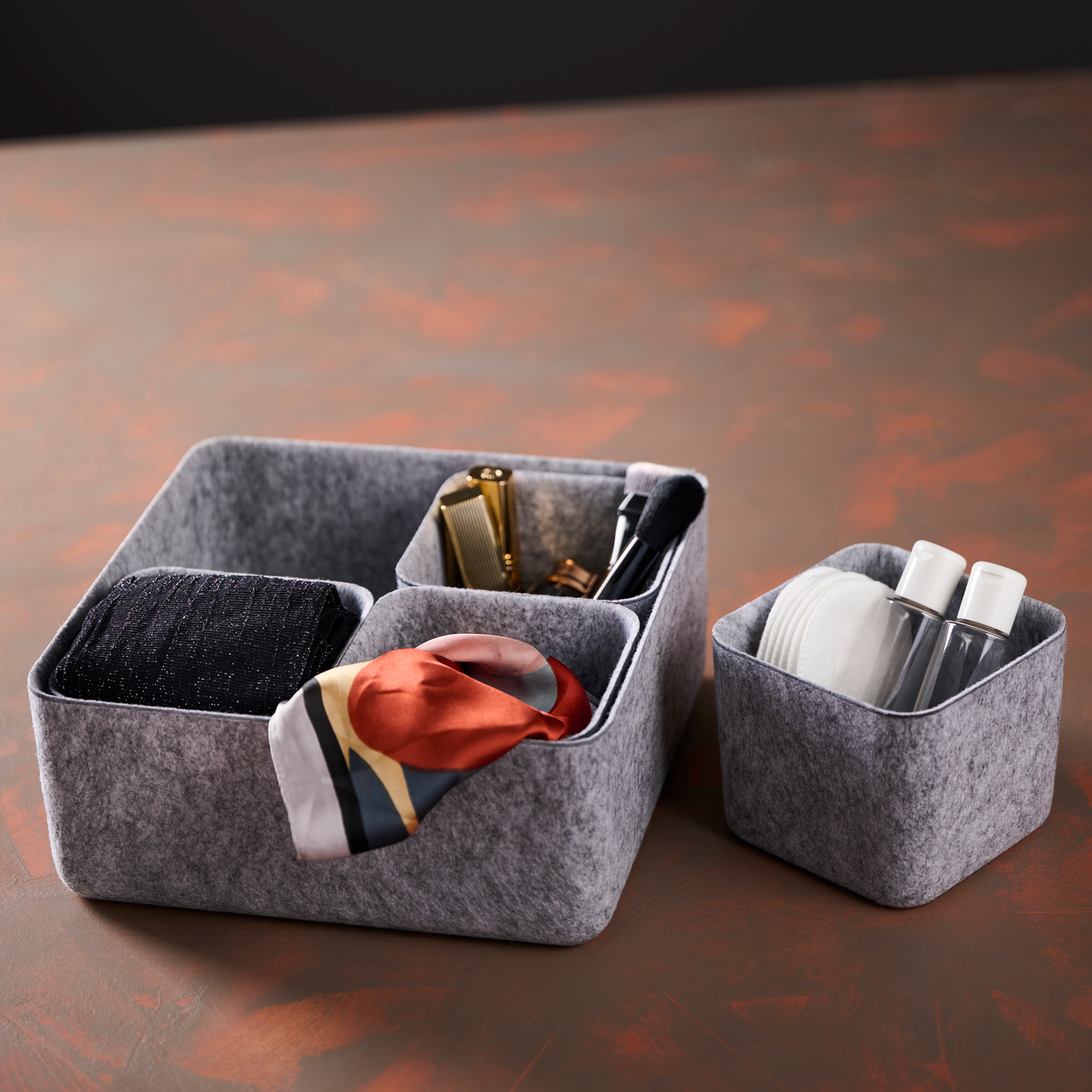 Oppbevaringskasser fra Day i grå filt, som er ideelt for å organisere og oppbevare ting i hjemmet.
