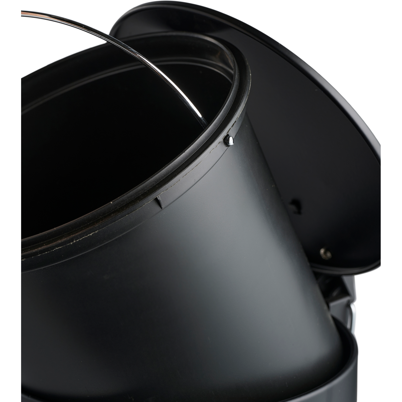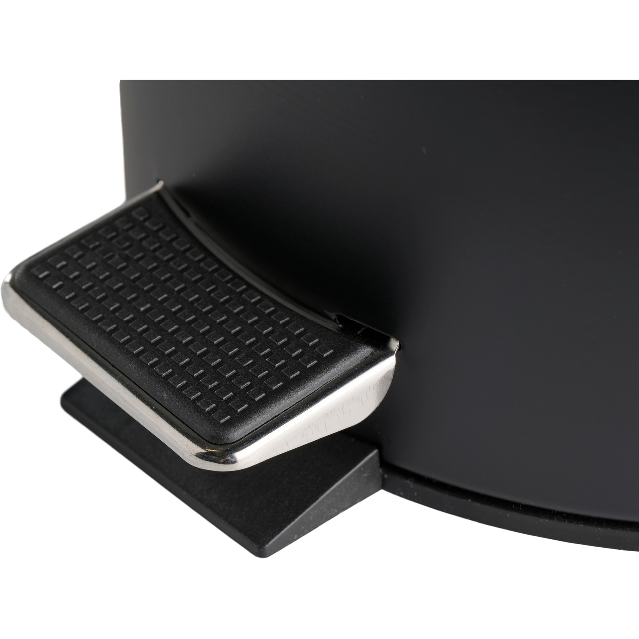 Pedalbøtten har en sort overflate i rustfritt stål, og en soft close-funksjon som sørger for stille og myk lukking.