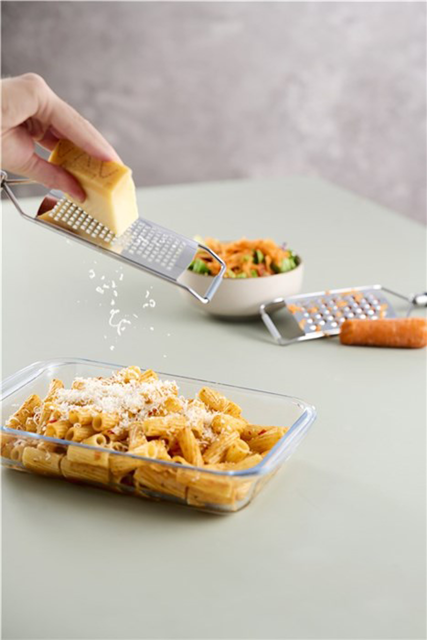 - Materiale: Rf. stål 430, TPR, PP og Silikon.