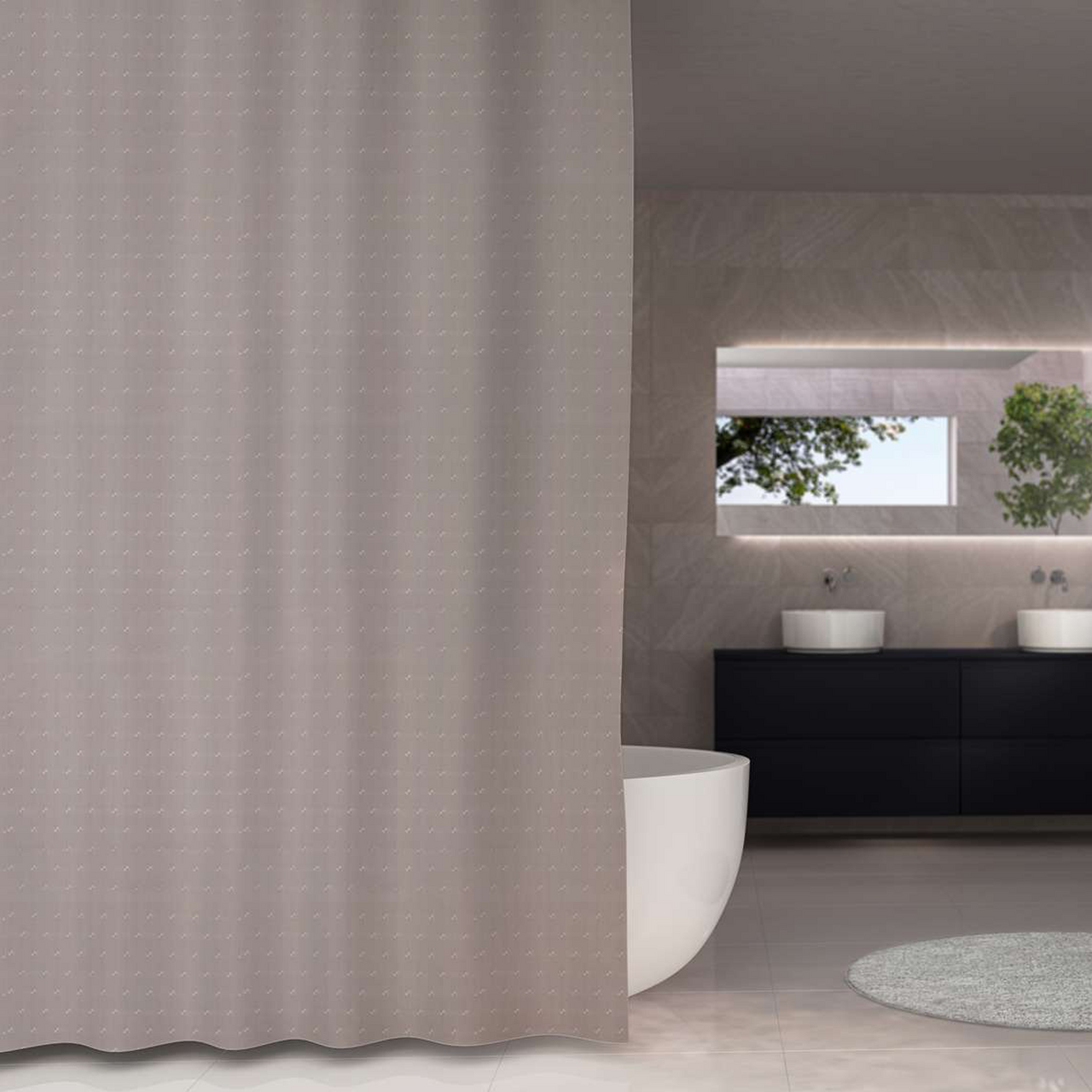 Dette dusjforhenget fra Debel har et klassisk ensfarget design, med små satin firkanter. Det har et innsydd tyngdebånd i bunnen, slik at det alltid henger pent.