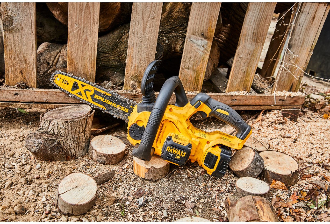 Denne kjedesagen fra Dewalt er et allsidig verktøy, som kan brukes utendørs og på byggeplasser. Kjedesagen er utstyrt med 30 cm Oregon-sverd og kjede, og er like effektiv ved kapping av tømmerstokker som ved trimming av trebjelker på trange steder.