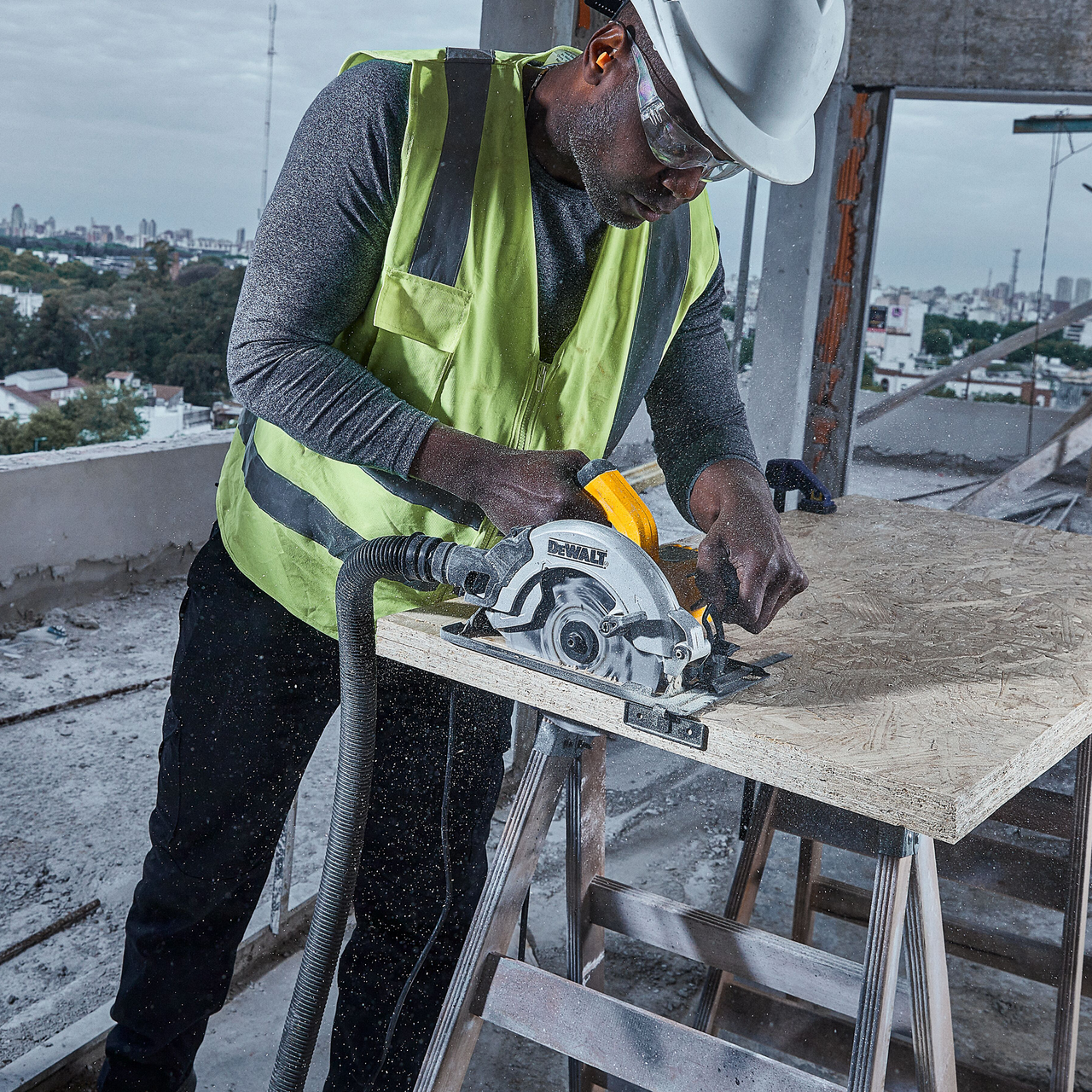 Denne sirkelsagen fra DeWalt er ideell for kapping, krysskutting og skråskjæring av tre og andre byggematerialer, noe som gjør den til et allsidig verktøy for ulike prosjekter.