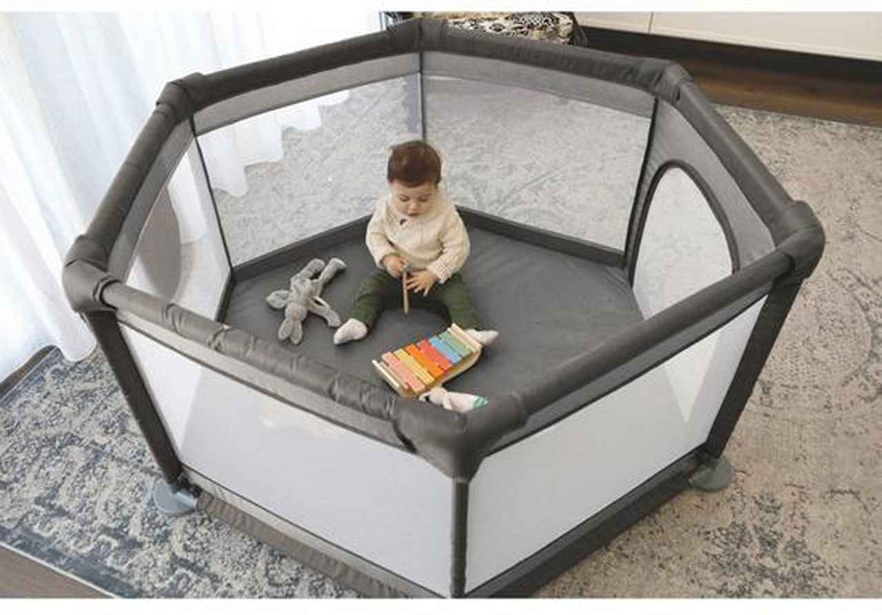 Med myke nettingvegger som gir god oversikt, rask montering på 15 minutter og et lettvektig design, er den perfekt både hjemme og på farten. Den kompakte størrelsen gir barnet god plass til å leke trygt.