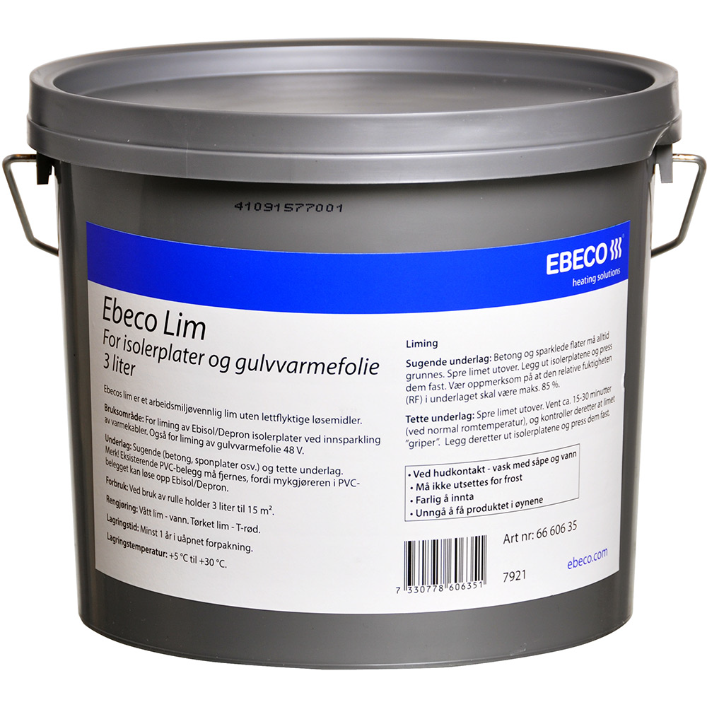 Dette folielimet fra Ebeco brukes for liming av Ebisol/Depron isolerplater ved innsparkling av varmekabler. Det er også egnet for liming av gulvvarmefolie 48 V.