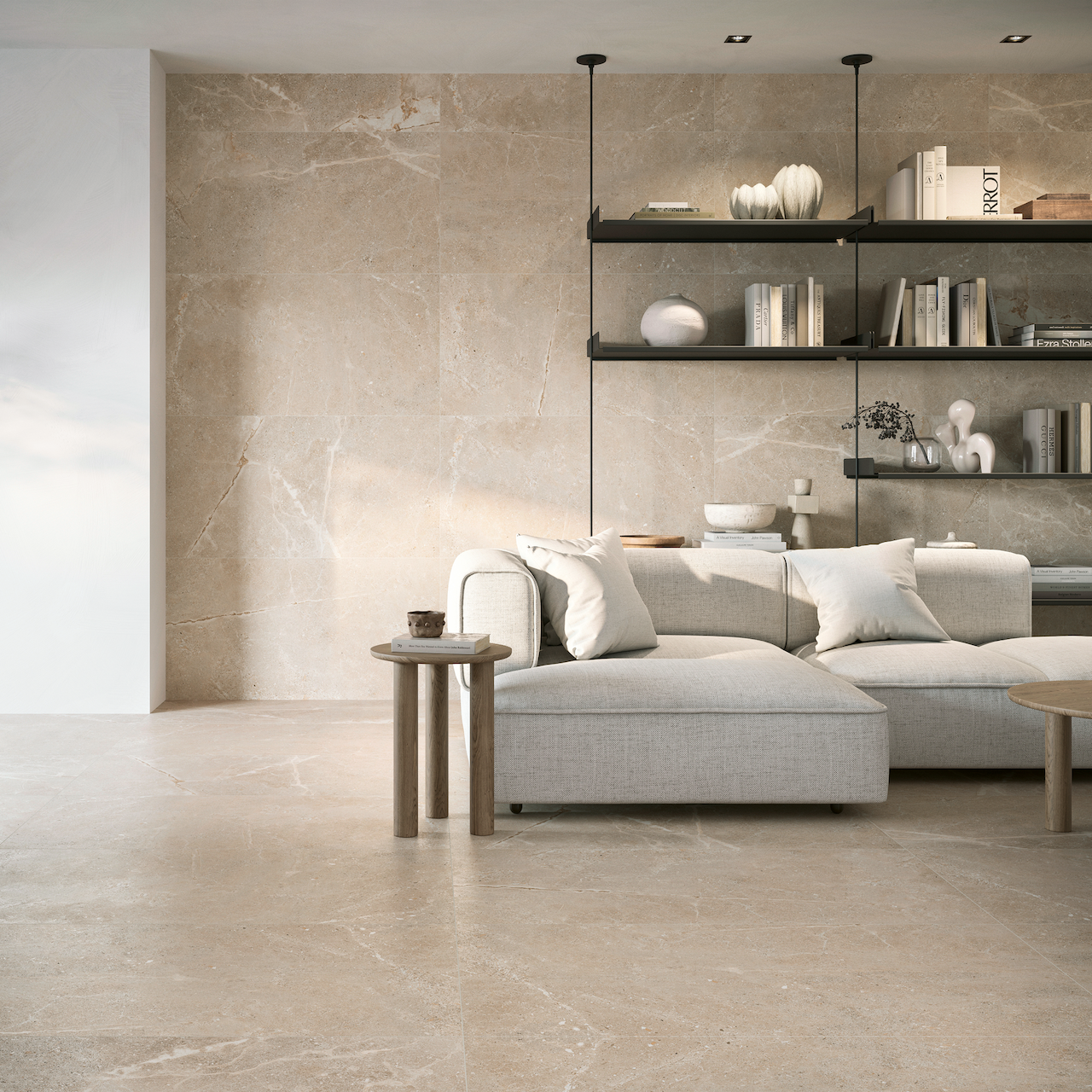 Den nøytrale fargen og det stilrene steinmønsteret gjør at denne flisen passer godt til de fleste rom i hjemmet. Den vil skape et elegant uttrykk, og kan fint kombineres med ulike elementer. Flisen er egnet til de fleste typer gulv og vegger, innen- og utendørs.