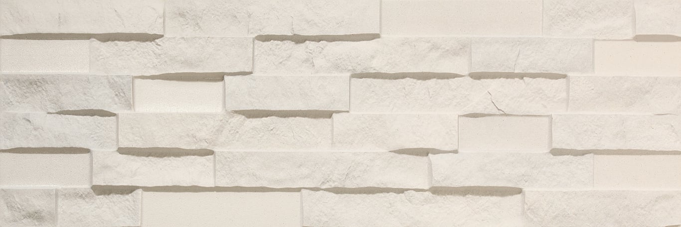 Montblanc-serien fra spanske El Molino er en serie porcellanatofliser med slitesterk overflate. Denne veggflisen i størrelse 20 x 60 har en matt, steinstrukturert overflate i hvit.