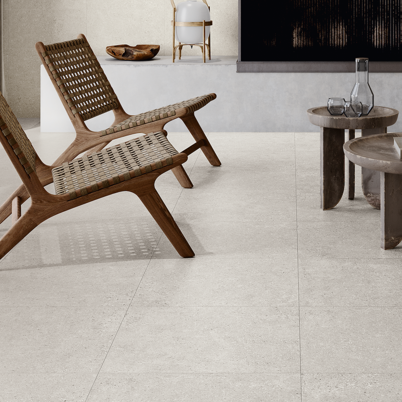 Den duse fargen og det minimalistiske mønsteret gjør at flisen passer godt inn i den skandinaviske stilen. Den kan kombineres med både lyse og mørke elementer. Flisen er egnet til de fleste typer gulv og vegger, innen- og utendørs.