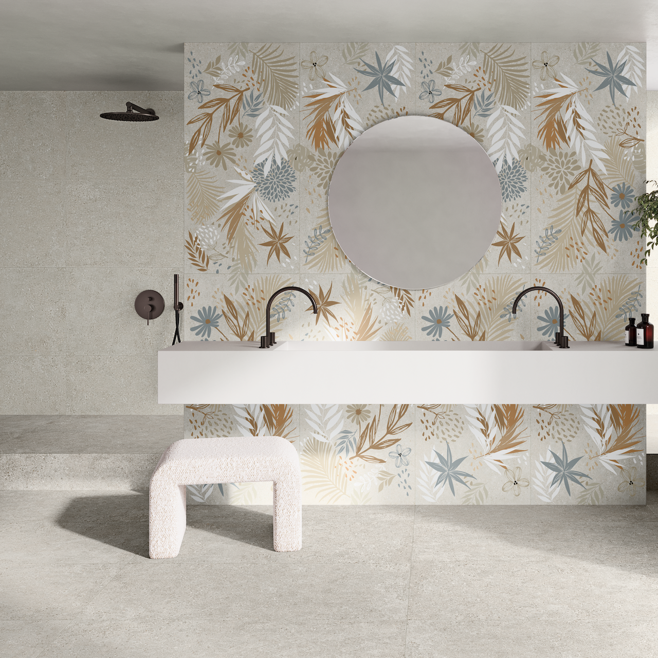 Den duse fargen og det minimalistiske mønsteret gjør at flisen passer godt inn i den skandinaviske stilen. Den kan kombineres med både lyse og mørke elementer. Flisen er egnet til de fleste typer gulv og vegger, innen- og utendørs.
