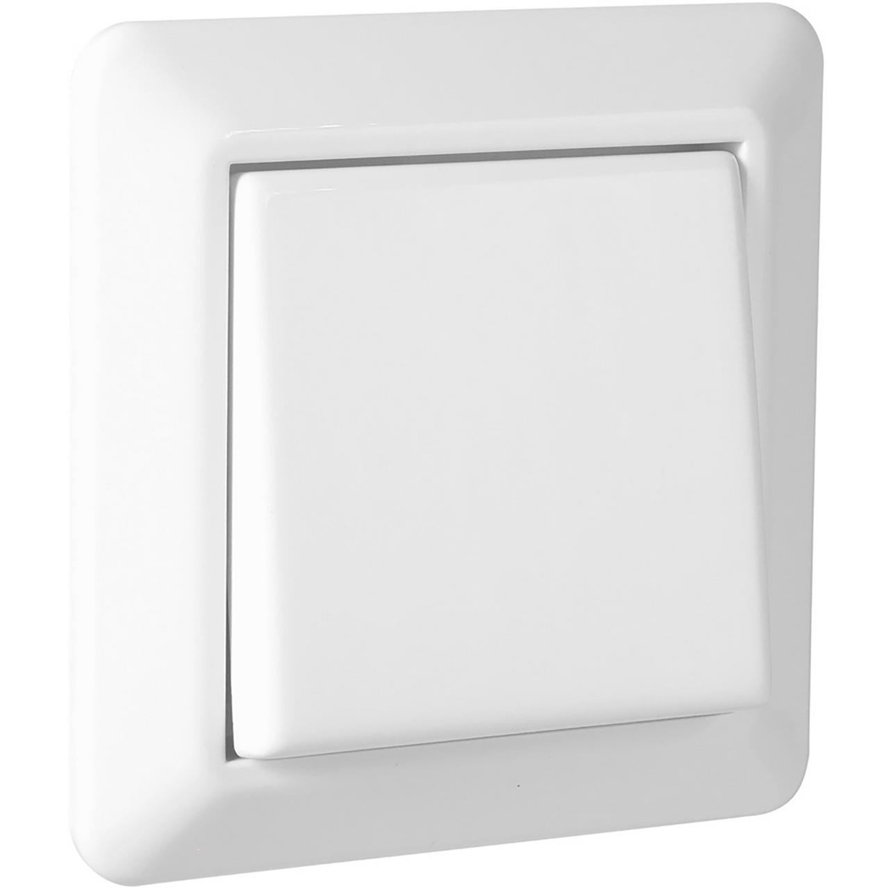 Innfelt bryter i RS Renhvit design med skrutilkobling. Bryteren er en vekselvender, og kan benyttes der man ønsker å slå av/på lyset med to brytere på forskjellige steder.