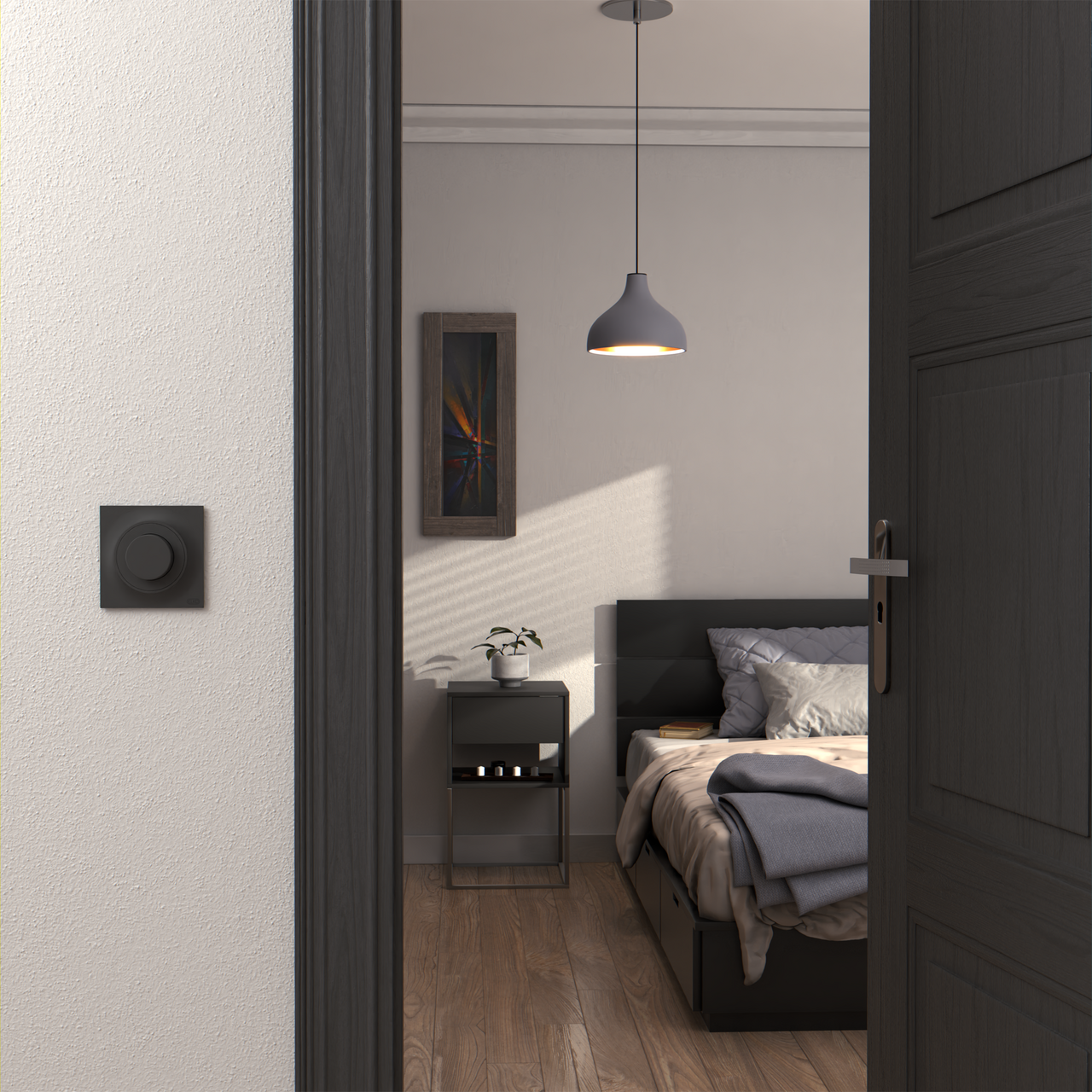 - Dimmerkontroll: Vri- og trykkfunksjon
