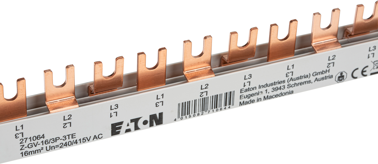 Denne samleskinnen fra Eaton har tre faser og tre poler.