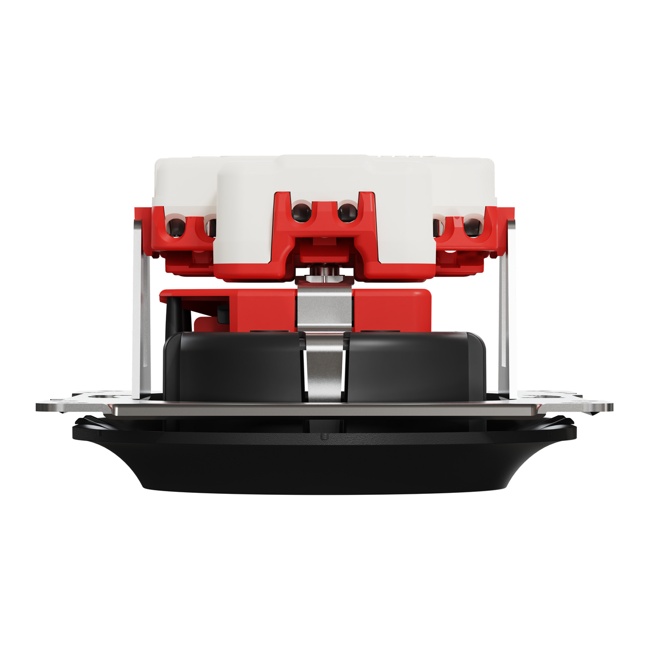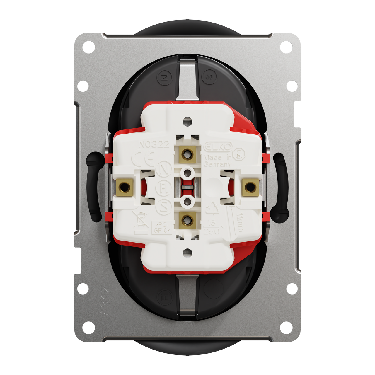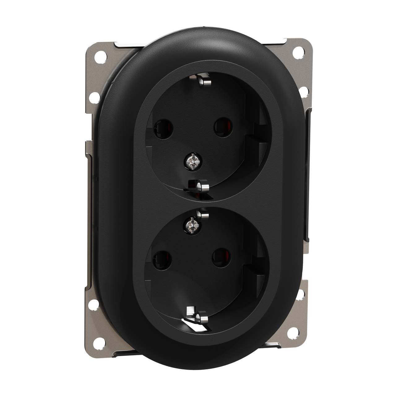ELKO One lav dobbel stikkontakt med jord og barnevern. Installeres med nyeste utvikling av hurtigklemmetilkobling, som gjør installasjonen rask, enkel og trygg.