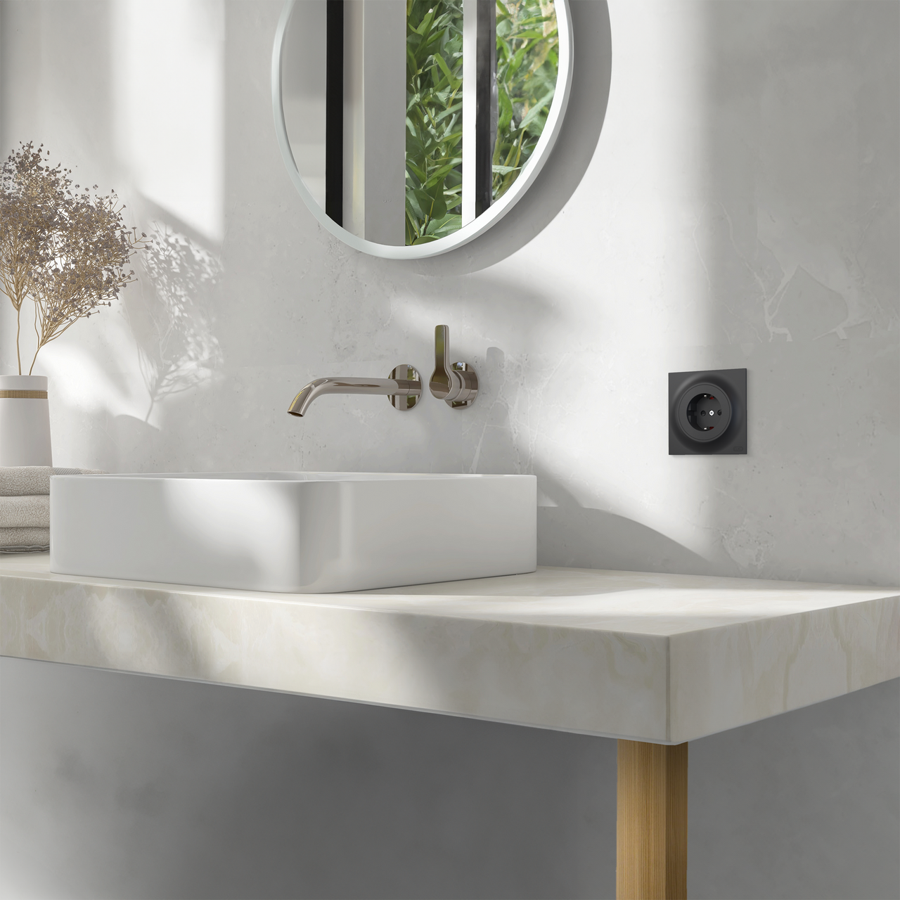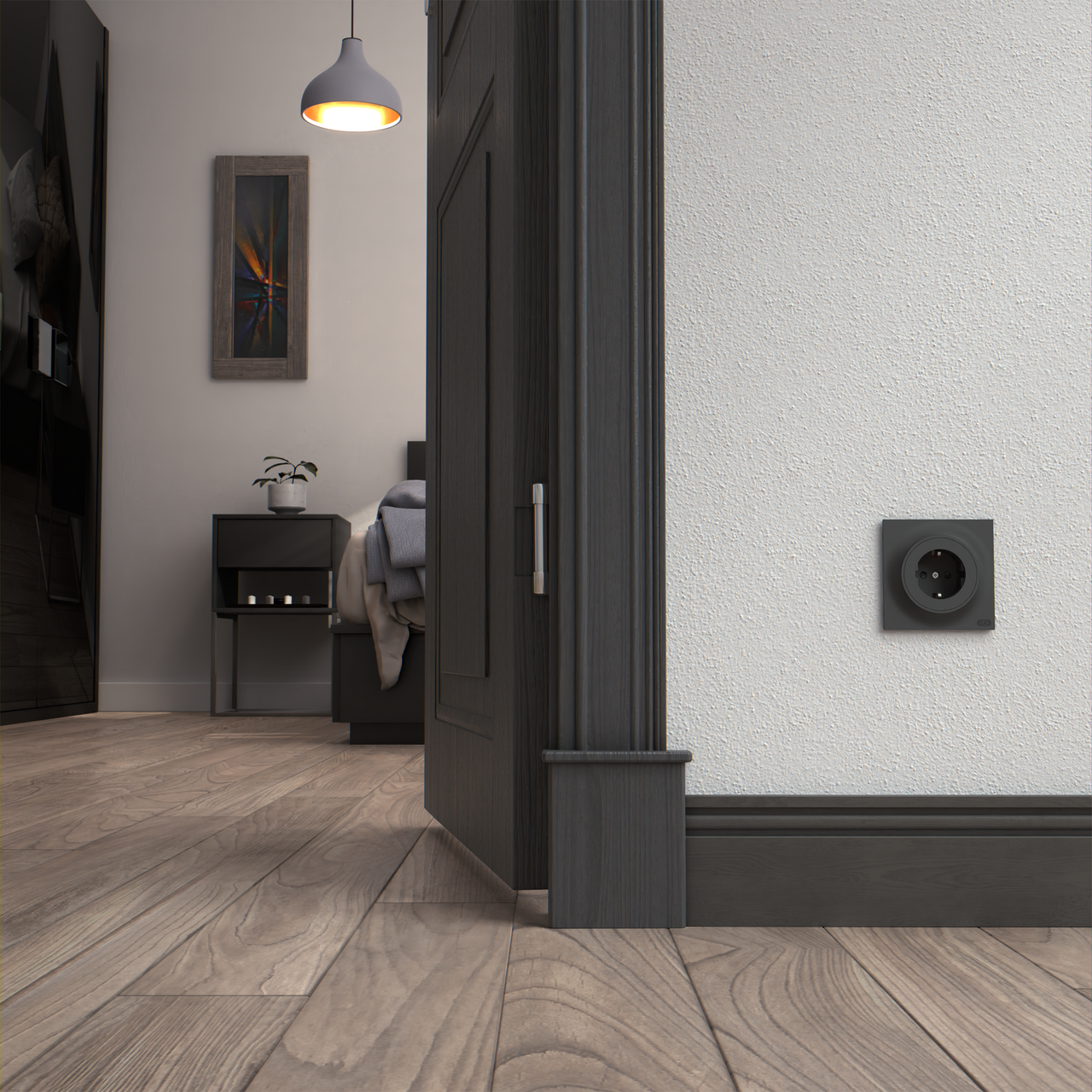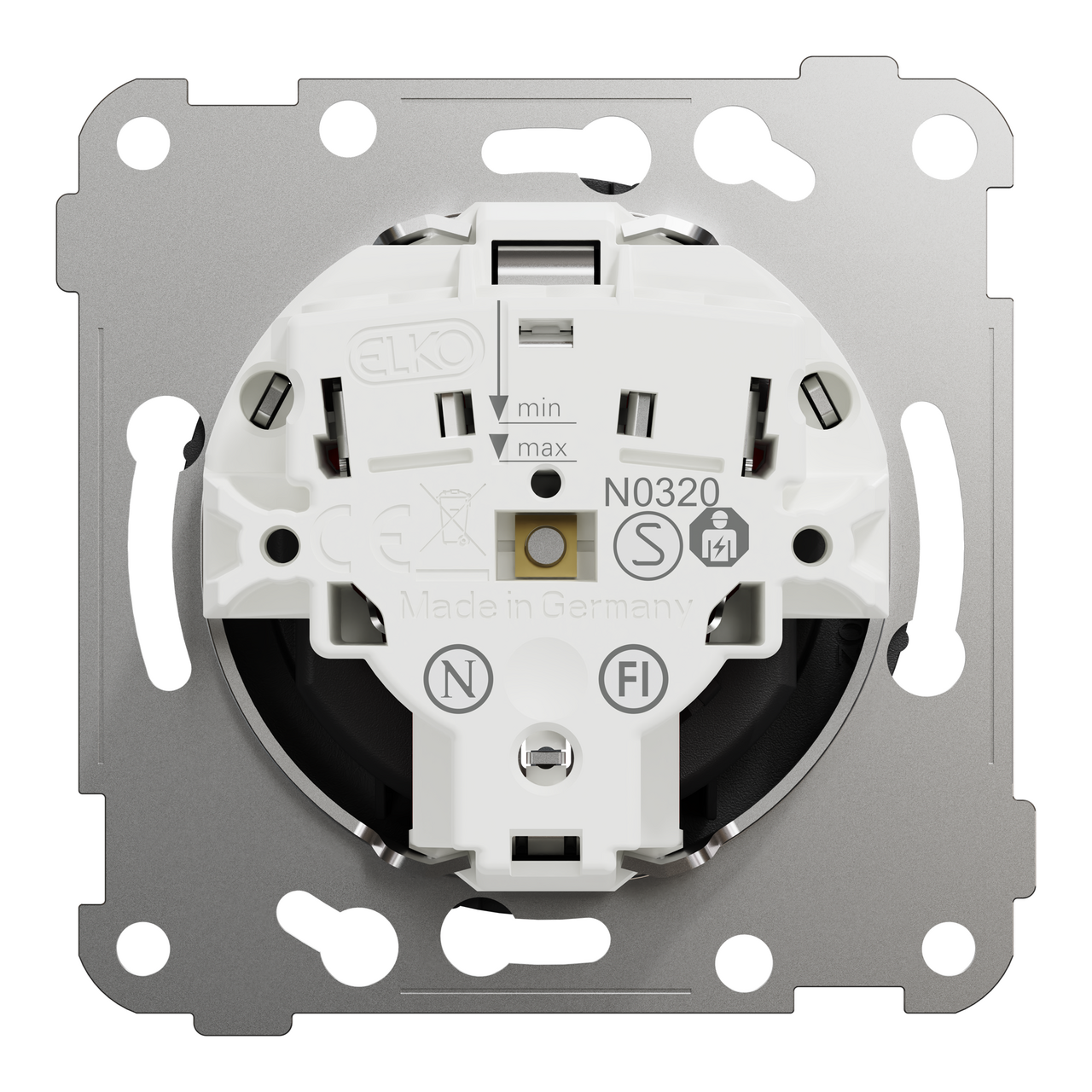 ELKO One jordet enkel stikkontakt er innfelt med hel dekkplate og barnevern. Stikkontakten installeres med ELKOs nyeste utvikling av hurtigklemmetilkobling, som gjør installasjonen rask, enkel og trygg. Kan monteres i både enkel- eller i enkel 33mm påveggskappe.