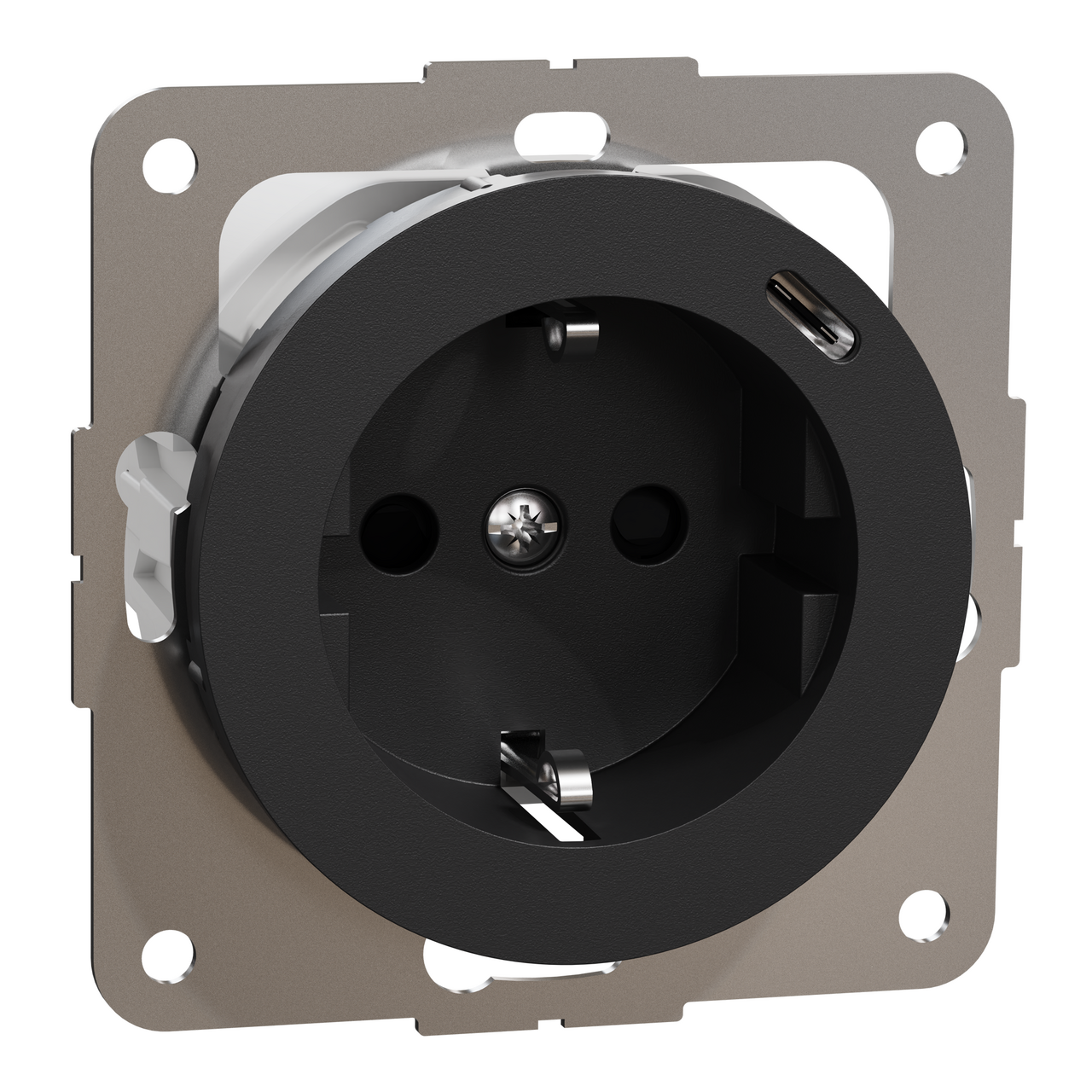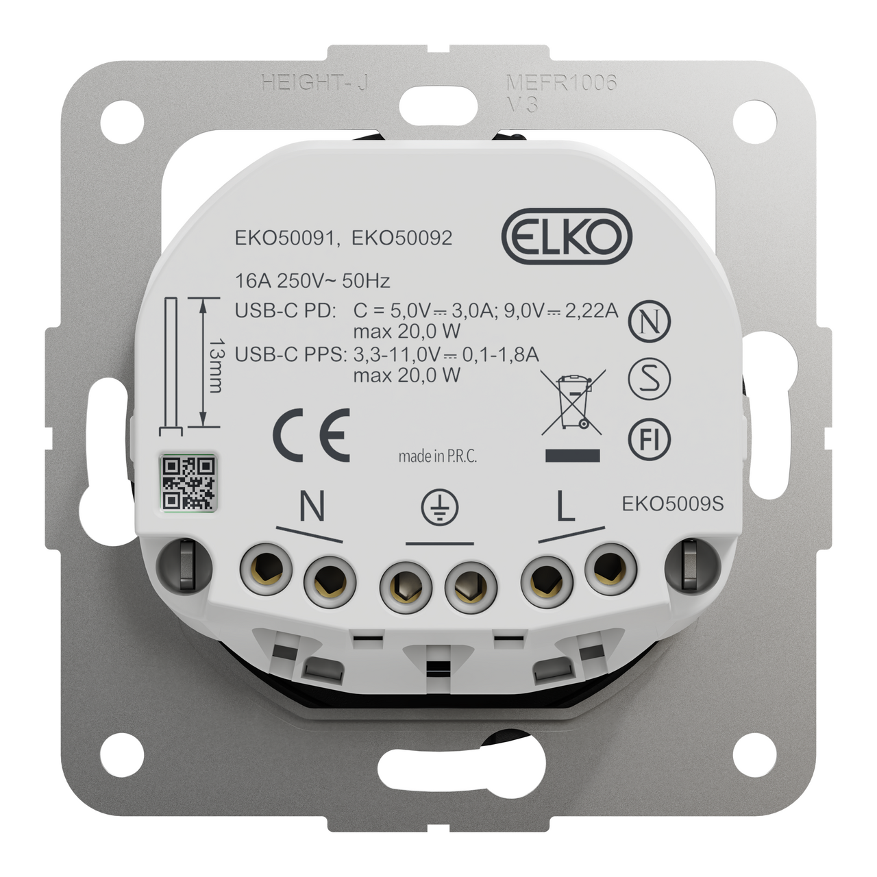 ELKO One enkel jordet stikkontakt med 1x USB C, designet med Power Delivery teknologi. Sammen med stikkontaktene vil du kunne lade elektroniske apparater opp til 20W i C-uttaket. Stikkontakten er innfelt med hel dekkplate og barnevern.