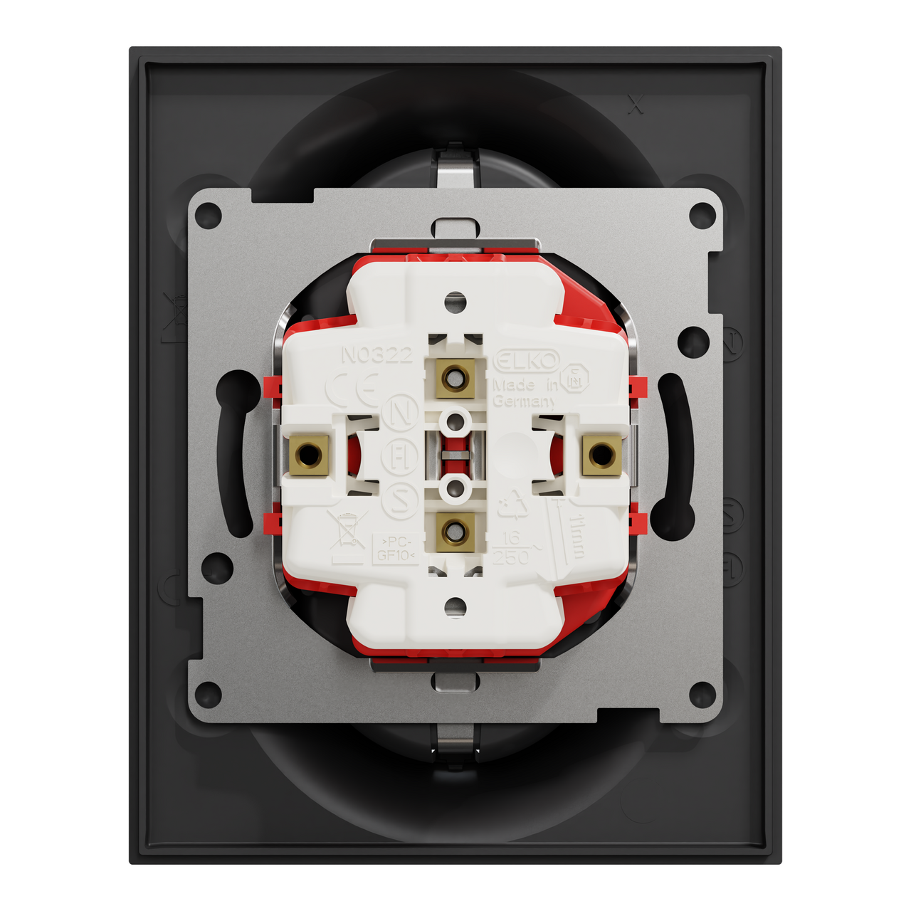 ELKO One jordet dobbel rehabstikk, som er innfelt med hel dekkplate og barnevern. Stikkontakten installeres med ELKOs nyeste utvikling av hurtigklemmetilkobling, som gjør installasjonen rask, enkel og trygg. Kan monteres i både enkel- eller 1,5 veggboks.