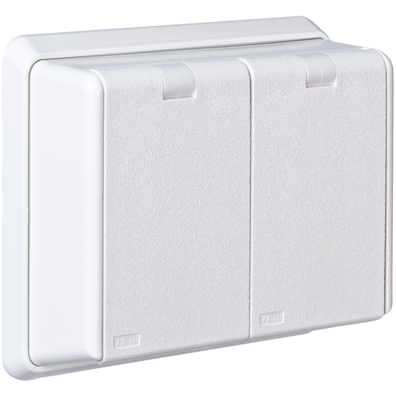 RS Renhvit dobbel innfelt sprutsikker stikkontakt IP44 med klapplokk og barnevern.