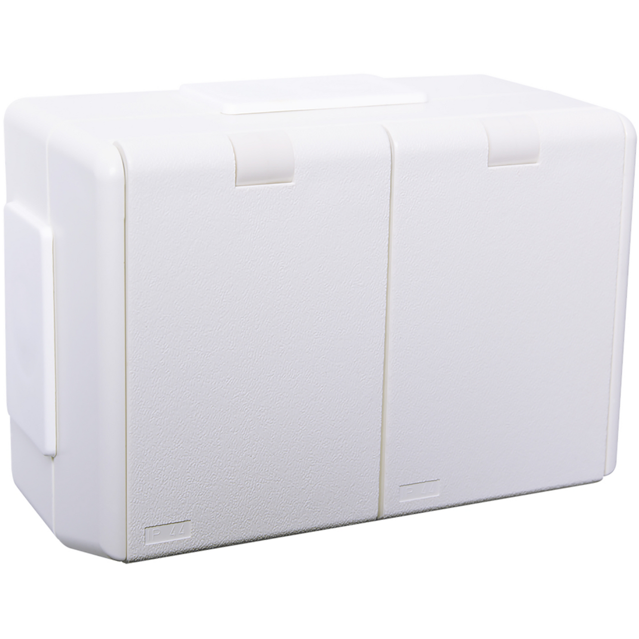 RS Renhvit påvegg dobbel IP44 stikkontakt med klapplokk og barnevern.