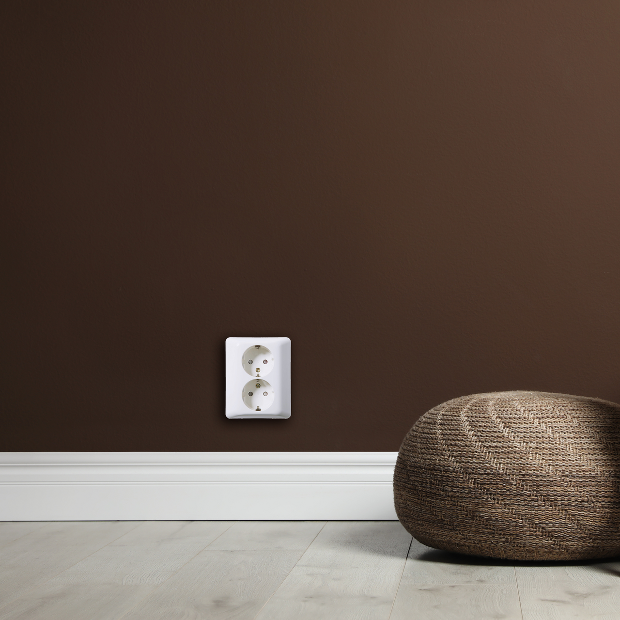 Lav stikkontakt bygger kun 9mm ut fra veggen. Stikkontakten passer kun i 1,5 veggboks.
