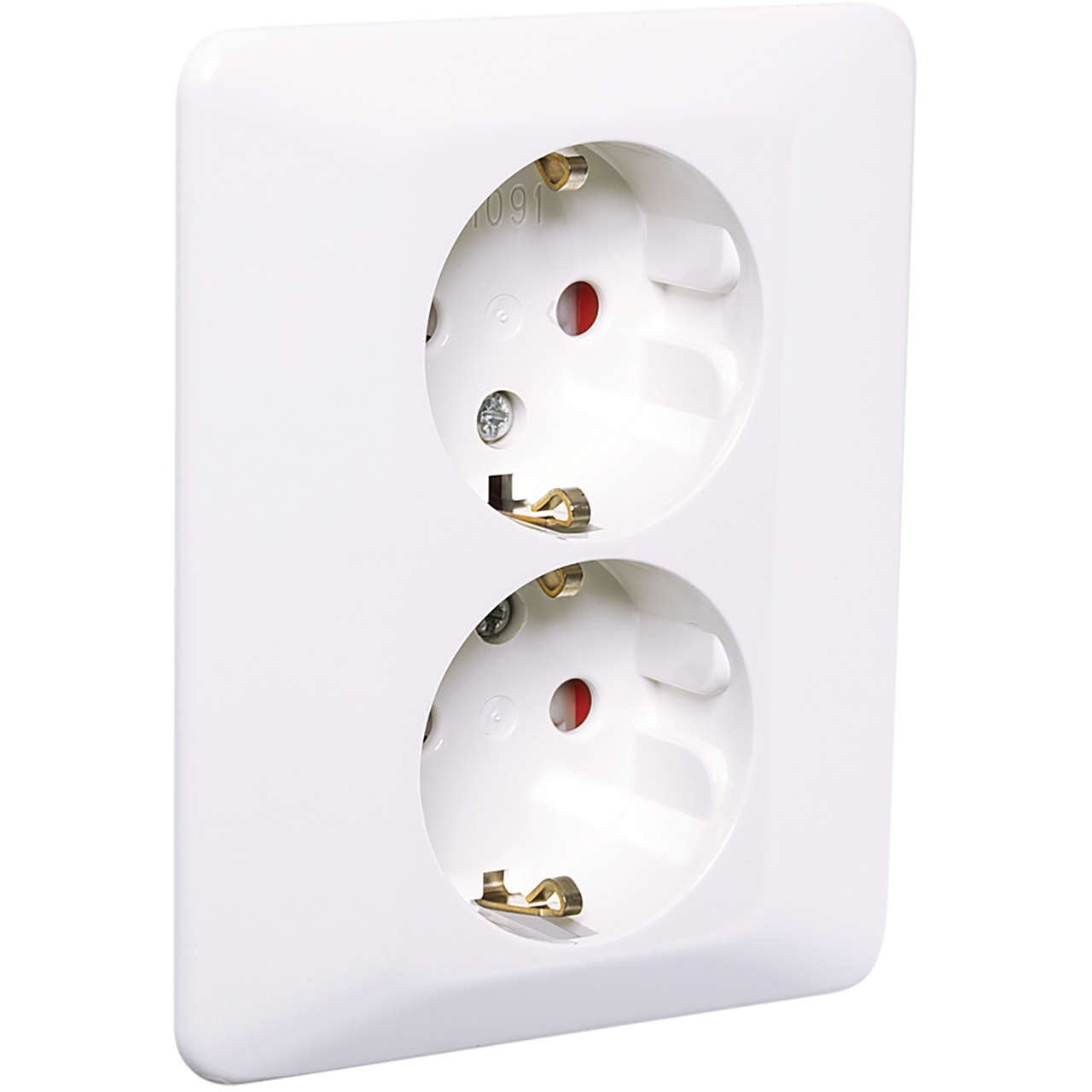 RS Renhvit dobbel stikkontakt ekstra lav med jord og barnevern.