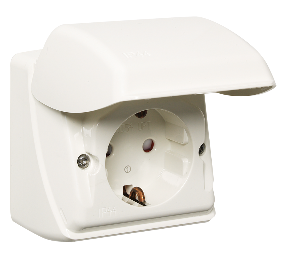 IP44 Stikkontakt med barnvern og klapplokk fra Elko