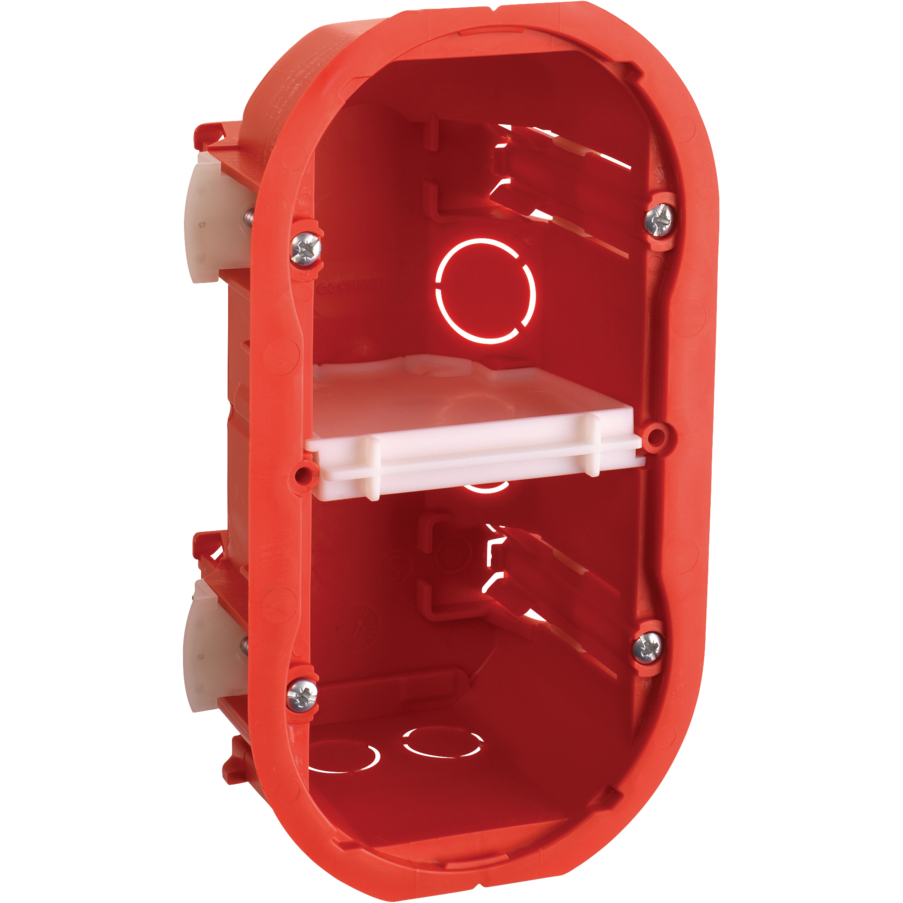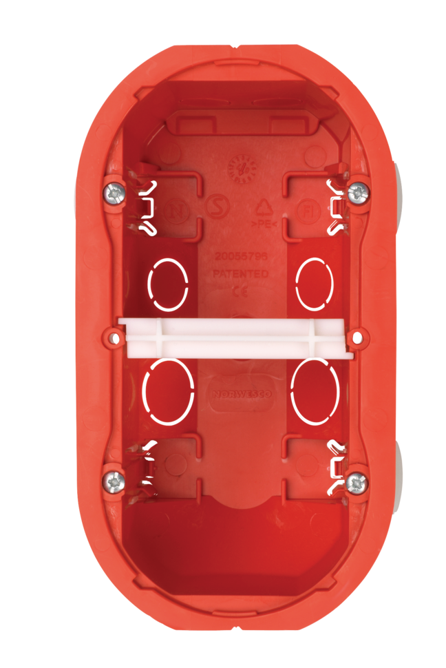 Dobbel multiboks for vegger med enkel eller dobbel gips. Et patentert festesystem gjør at multiboksen kun har to skruer på hver side som fester både boksen og materiellet. Dette, sammen med innfellbar låsemekanisme, gjør at multiboksen er meget rask å montere. Leveres med skillevegg.