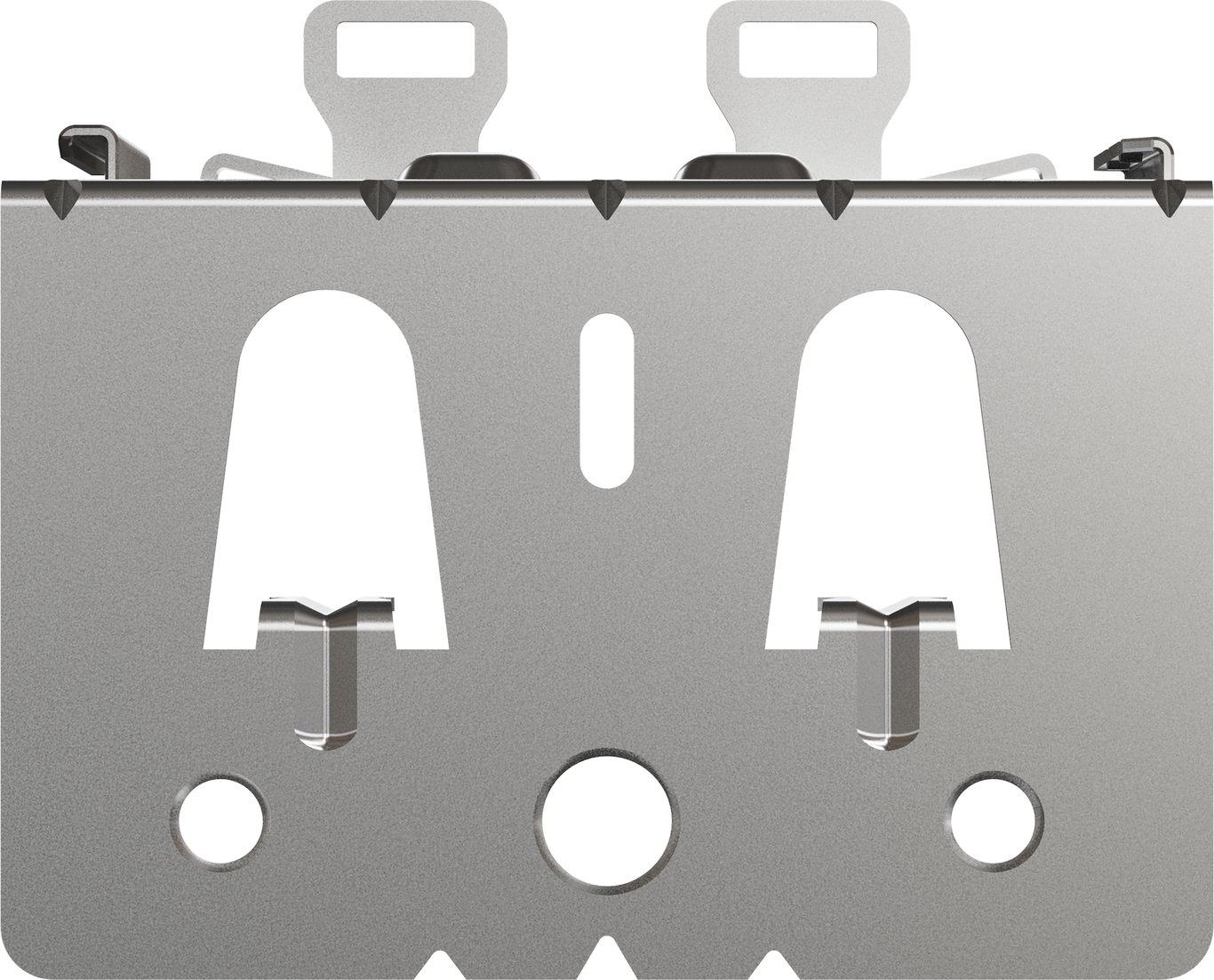 Dette stenderfestet i metall fra Elko er til Flexi+-bokser, og leveres med senterspor, ferdig spikerplugg for montering på trestender, og hull for montering på stålstender med skrue.