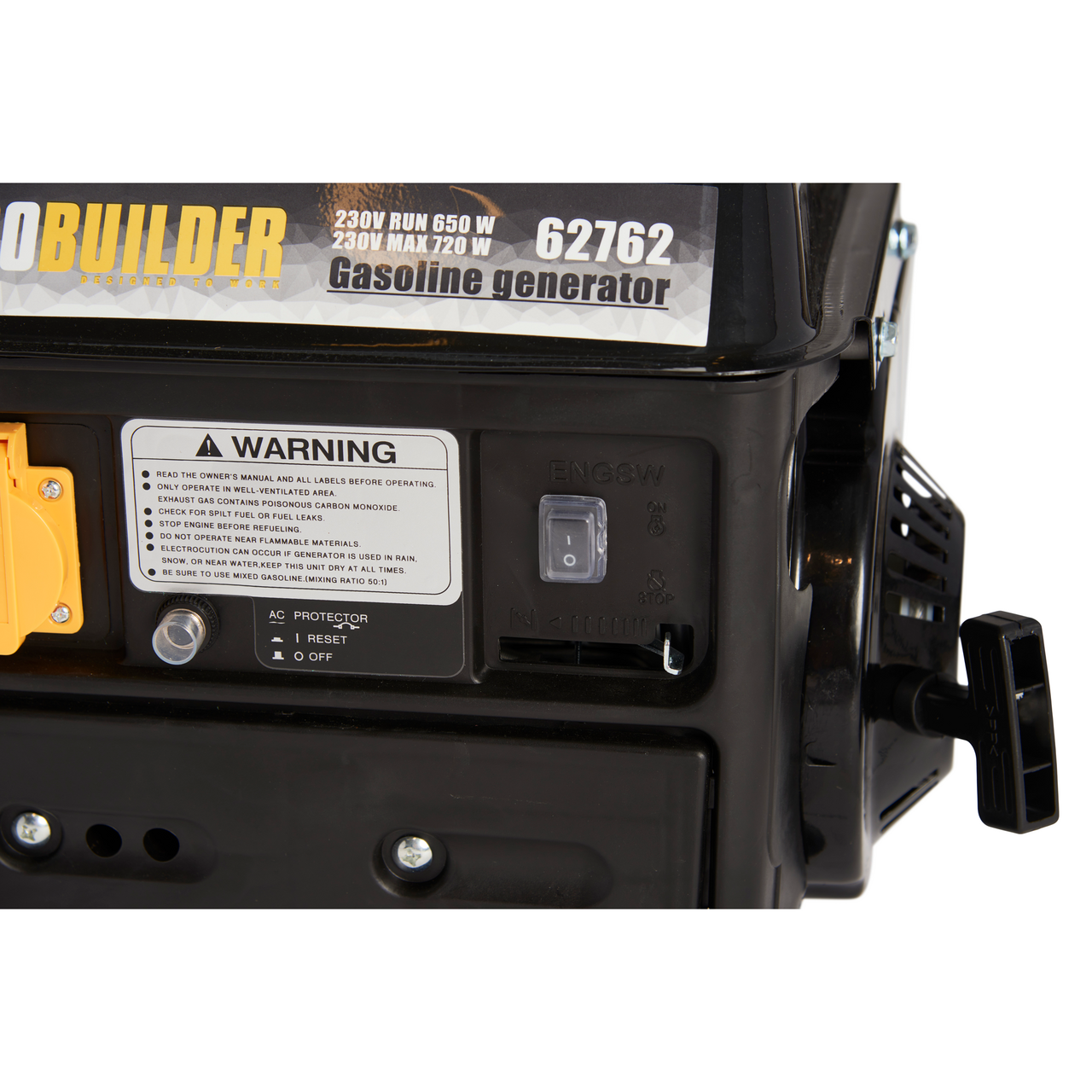 Driftstid: 5,8 timer2-taksmotor med 2,0 hkMaks effekt: 720WKompakt og bærbarRekylstart og luftkjølingForskrift om elektrisk utstyr § 21 forplikter Megaflis som tilbyder av elektrisk installasjonsmateriell til å opplyse om at installasjonsmateriell ment for å kunne inngå i et fast elektrisk anlegg kan kun installeres av en registrert installasjonsvirksomhet. Unntatt er elektrisk materiell som utelukkende er ment for bruk i faste teleinstallasjoner, og elektrisk materiell som forbruker selv lovlig kan installere. Her kan du lese mer om hva du har lov til å gjøre selv av elektrisk arbeid: https://www.sikkerhverdag.no/strom/gjor-det-selv/elektrisk-arbeid-dette-kan-du-gjore-selv-av-elektrisk-arbeid/