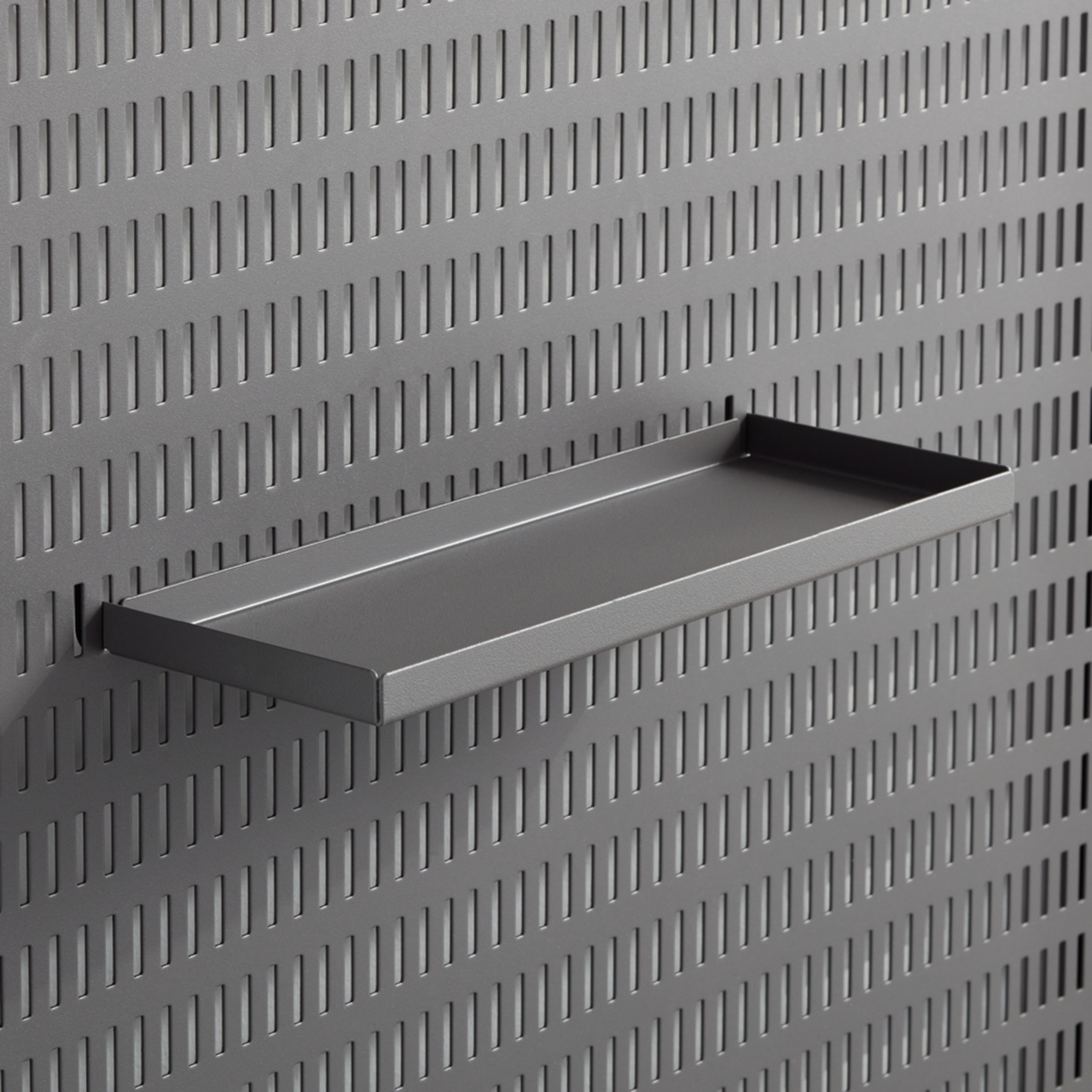 Hylle til Elfa Garage+ oppbevaringstavle for småting du vil ha lett tilgjengelig.