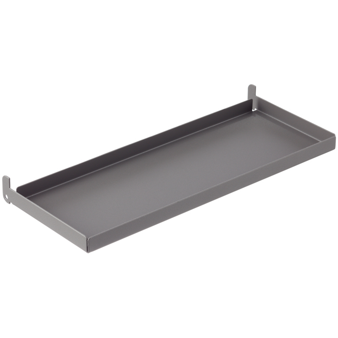 Denne hyllen monteres på Elfa Garage+ oppbevaringstavle og gir plass til bokser, sprayflasker, skruer og annet utstyr som ikke henges opp. Et praktisk tillegg som gjør tavlen enda mer funksjonell.