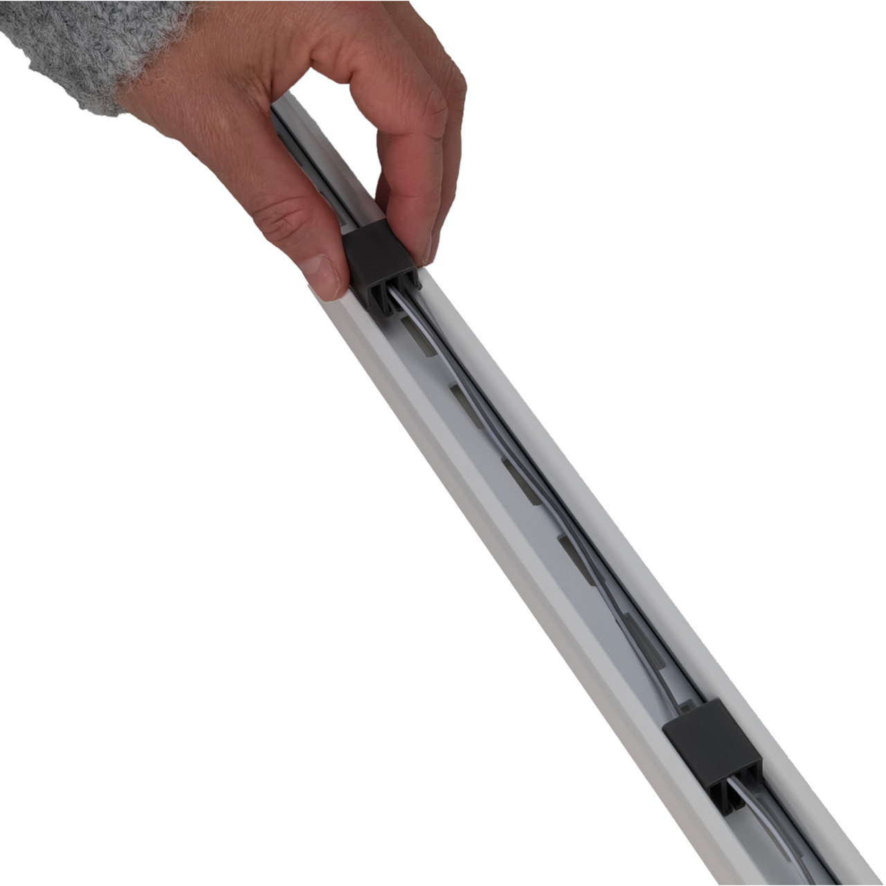 Denne kabelsamleren brukes for å samle og organisere ledninger i Elfa Garage+ oppbevarings- og belysningsløsninger. Den gir et renere uttrykk og bidrar til bedre orden rundt arbeidsplassen.