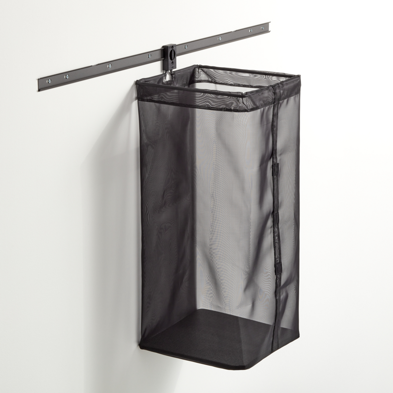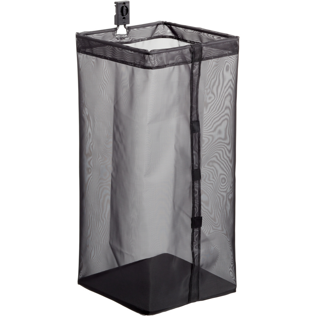 Denne meshbagen passer godt til baller, flasker, hageredskaper og annet utstyr som kan være vanskelig å holde samlet. Den store åpningen og praktiske frontlukningen gjør det enkelt å fylle og tømme bagen ved behov. Åpning i front med borrelåslukking som strekker seg i hele høyden. Fest den på Garage+ oppbevaringslist eller bærelist, eller skru den fast i veggen for praktisk oppbevaring.