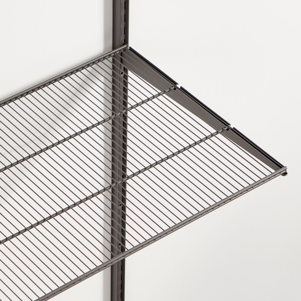 Denne trådhyllen er utviklet for Elfa Garage+ og passer godt til oppbevaring av verktøy, bokser, rengjøringsutstyr og andre ting du vil ha oversikt over. Den åpne utformingen gir god ventilasjon og et praktisk uttrykk i garasje og bod. Hyllen klikkes enkelt på plass mellom to Décor+ knekter og krever ingen verktøy ved installasjonen. Klipp til ønsket bredde for å tilpasse lagringsbehovene dine. Legg til en hyllelist for en stilig finish.