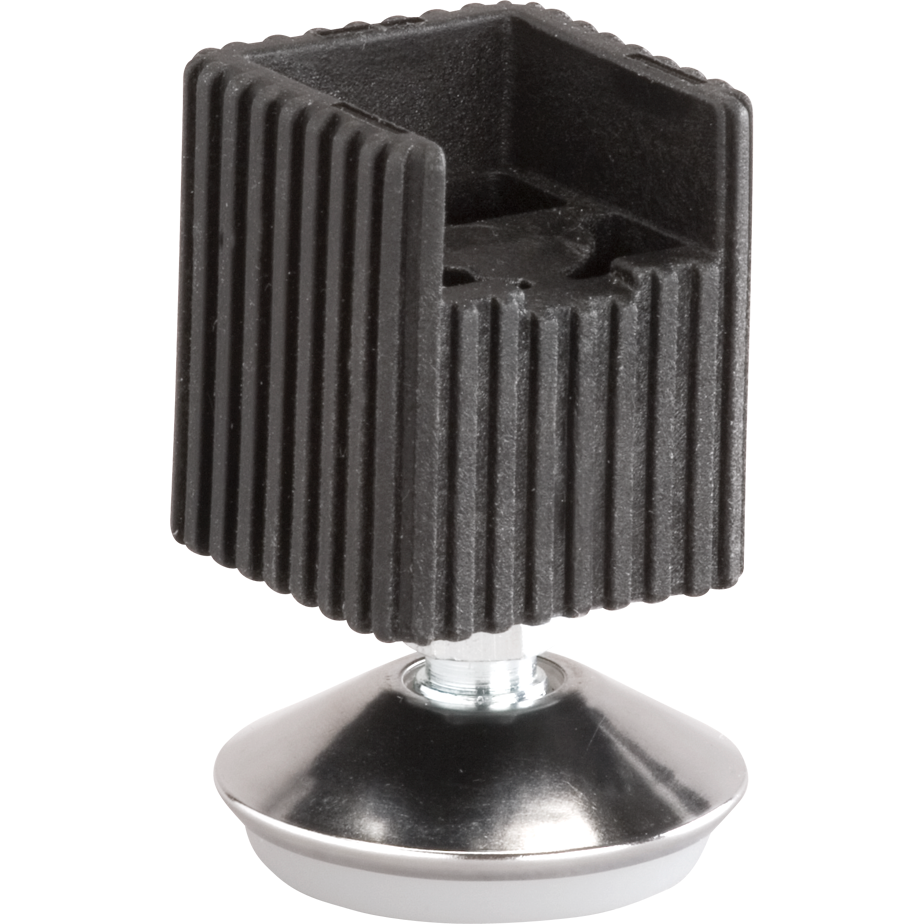 Justerbare føtter til kurvstativ. Brukes der det er ujevnt gulv eller høye gulvlister. Forhøyer kurvstativet med 50-63 mm. Leveres i 4-pk.
