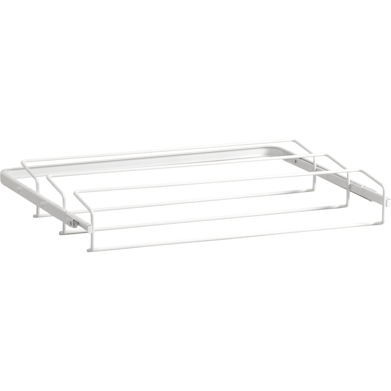 Uttrekkbart skostativ for oppbevaring av sko med høye hæler. Gir god oversikt og enkel tilgang. Klikkes enkelt på plass mellom to Klikk-inn-knekter 40. Du trenger ingen verktøy.