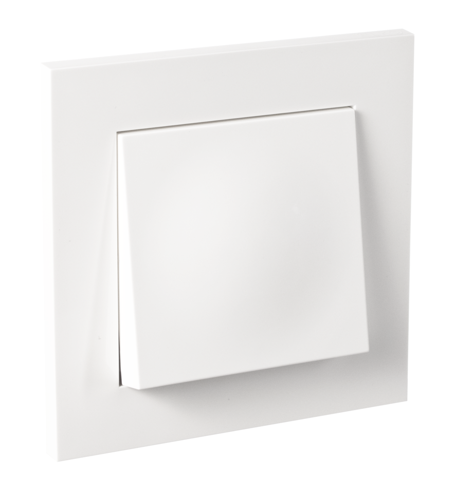 Innfelt 1-polet bryter i polarhvit design utførelse. ELKO Plus serien har et tidløst moderne design, med slette flater og rette kanter.