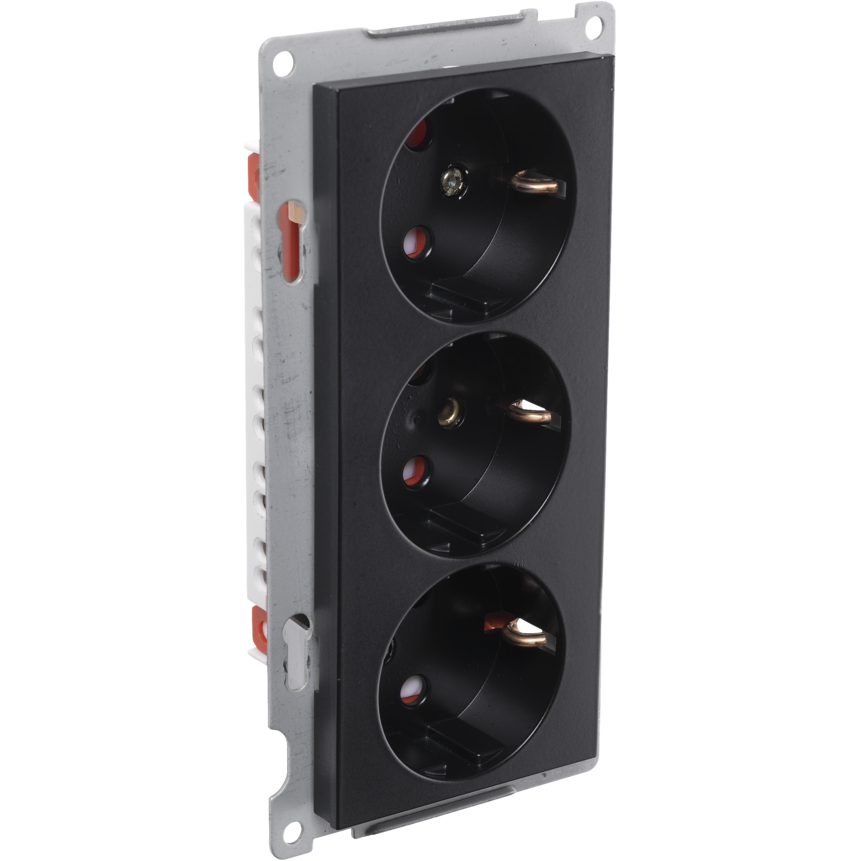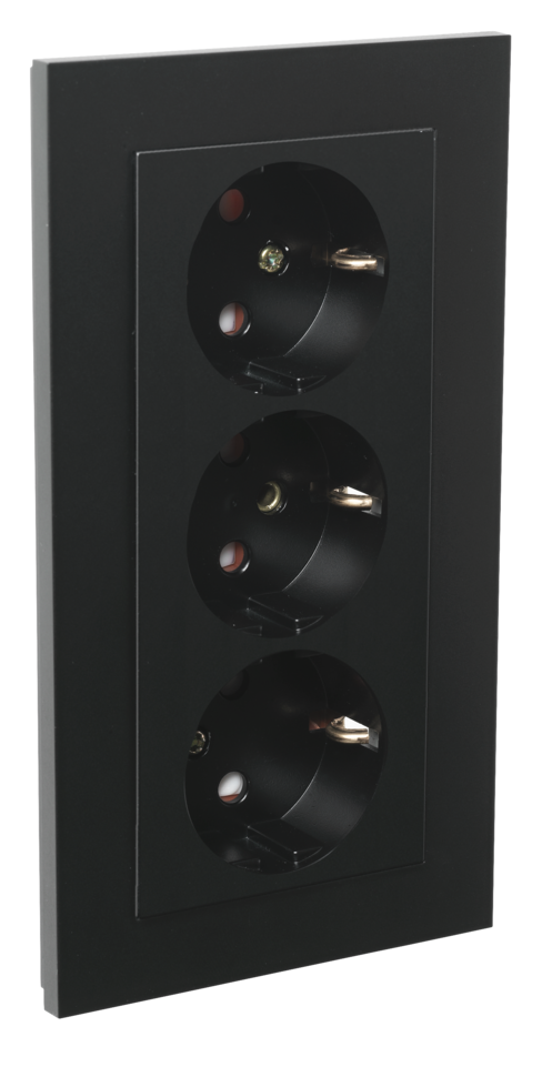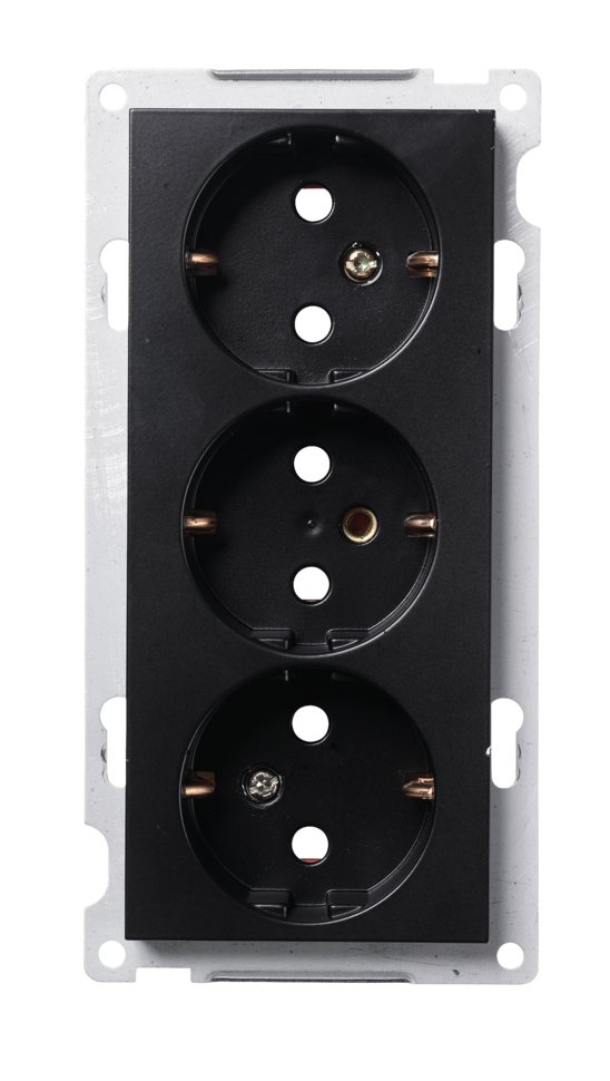 Trippel stikkontakt med jord uten ramme.Barnevern.16 A 250V.Kapslingsklasse:IP20.Halogenfri.Skruterminaler med heiseklemme.Hullavstand i festeplate: 60mm.Montering: Dobbel veggboks eller dobbel kappe.Innbygningsdybde: 32mm.Farge: Sort.Forskrift om elektrisk utstyr § 21 forplikter Megaflis som tilbyder av elektrisk installasjonsmateriell til å opplyse om at installasjonsmateriell ment for å kunne inngå i et fast elektrisk anlegg kan kun installeres av en registrert installasjonsvirksomhet. Unntatt er elektrisk materiell som utelukkende er ment for bruk i faste teleinstallasjoner, og elektrisk materiell som forbruker selv lovlig kan installere. Her kan du lese mer om hva du har lov til å gjøre selv av elektrisk arbeid: https://www.sikkerhverdag.no/strom/gjor-det-selv/elektrisk-arbeid-dette-kan-du-gjore-selv-av-elektrisk-arbeid/