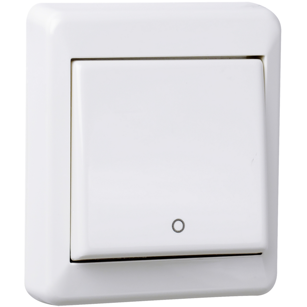 RS Renhvit påveggsbryter med skrutilkobling. Bryteren er 2 polet og leveres med bakplate som fungerer som mal og benyttes der det er krav om topolet brudd, som f.eks i våtrom eller utendørs installasjon.
