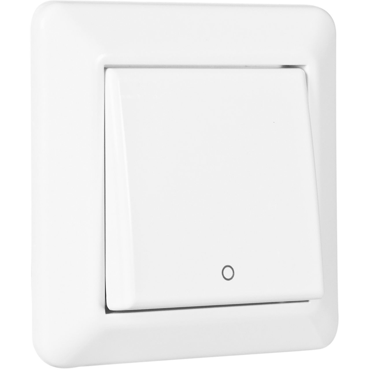 Innfelt bryter i RS Renhvit design. Bryteren er 2 polet, og benyttes der det er krav om topolet brudd, som f.eks. i våtrom eller utendørs installasjon.
